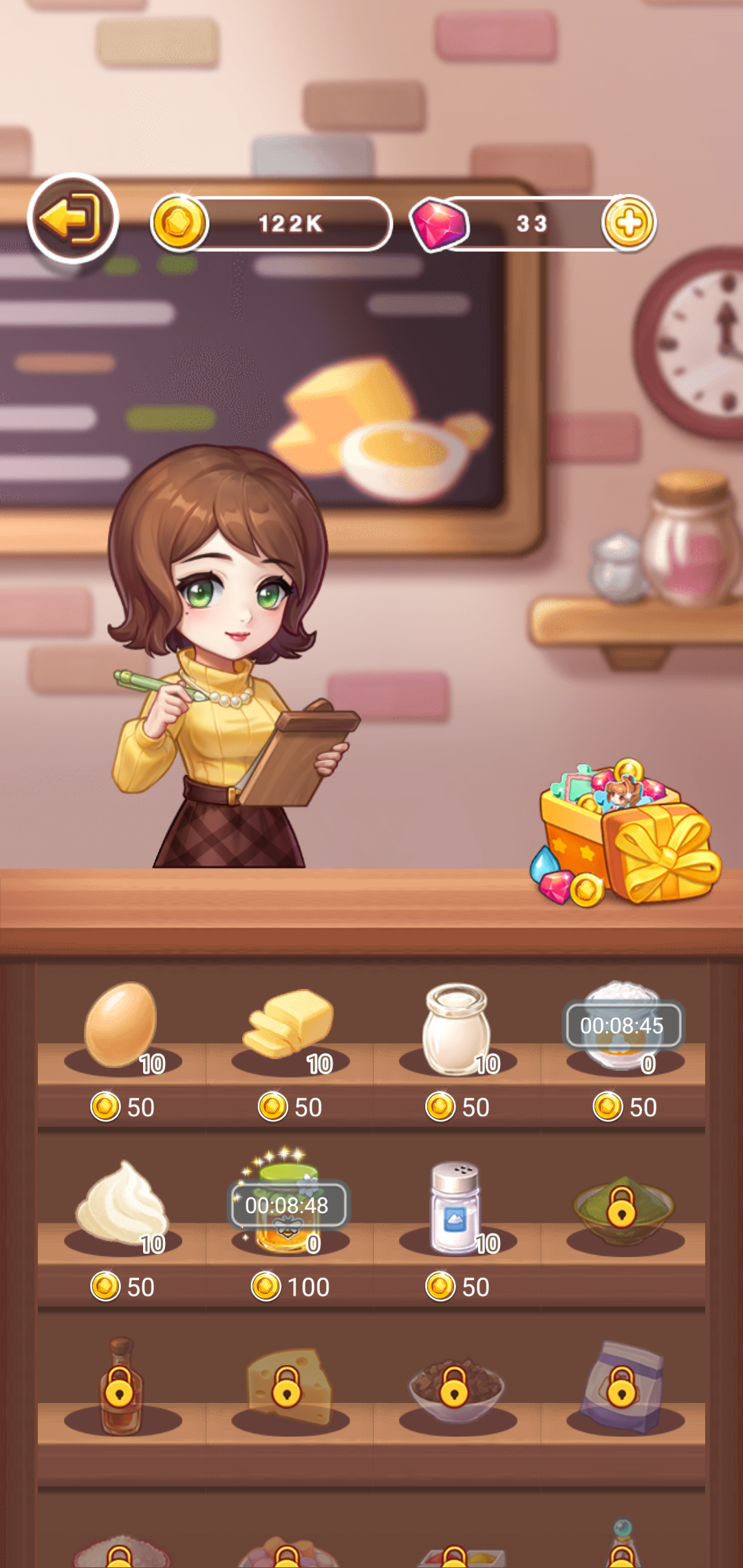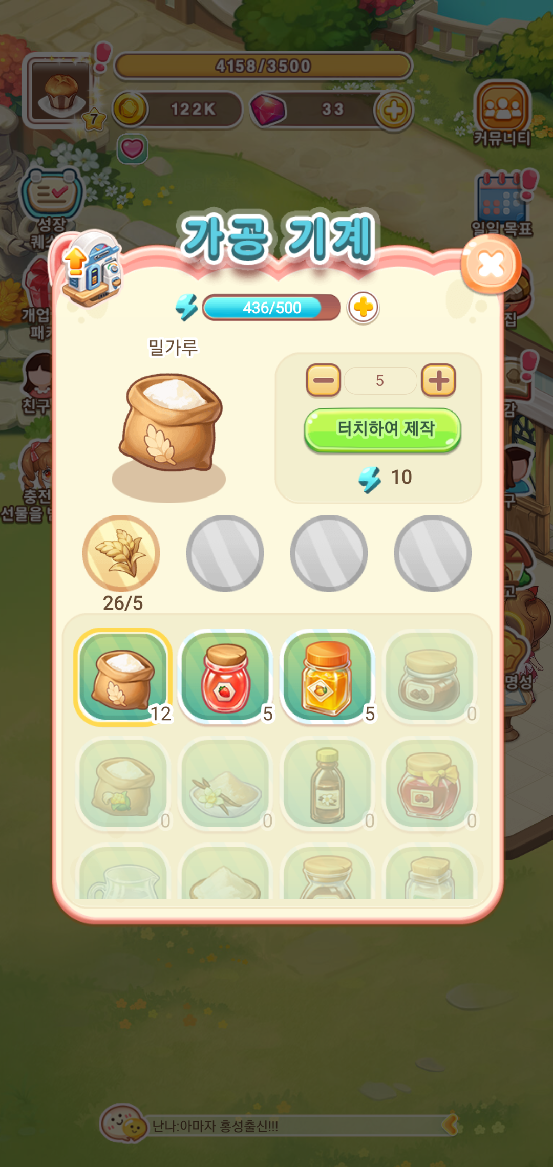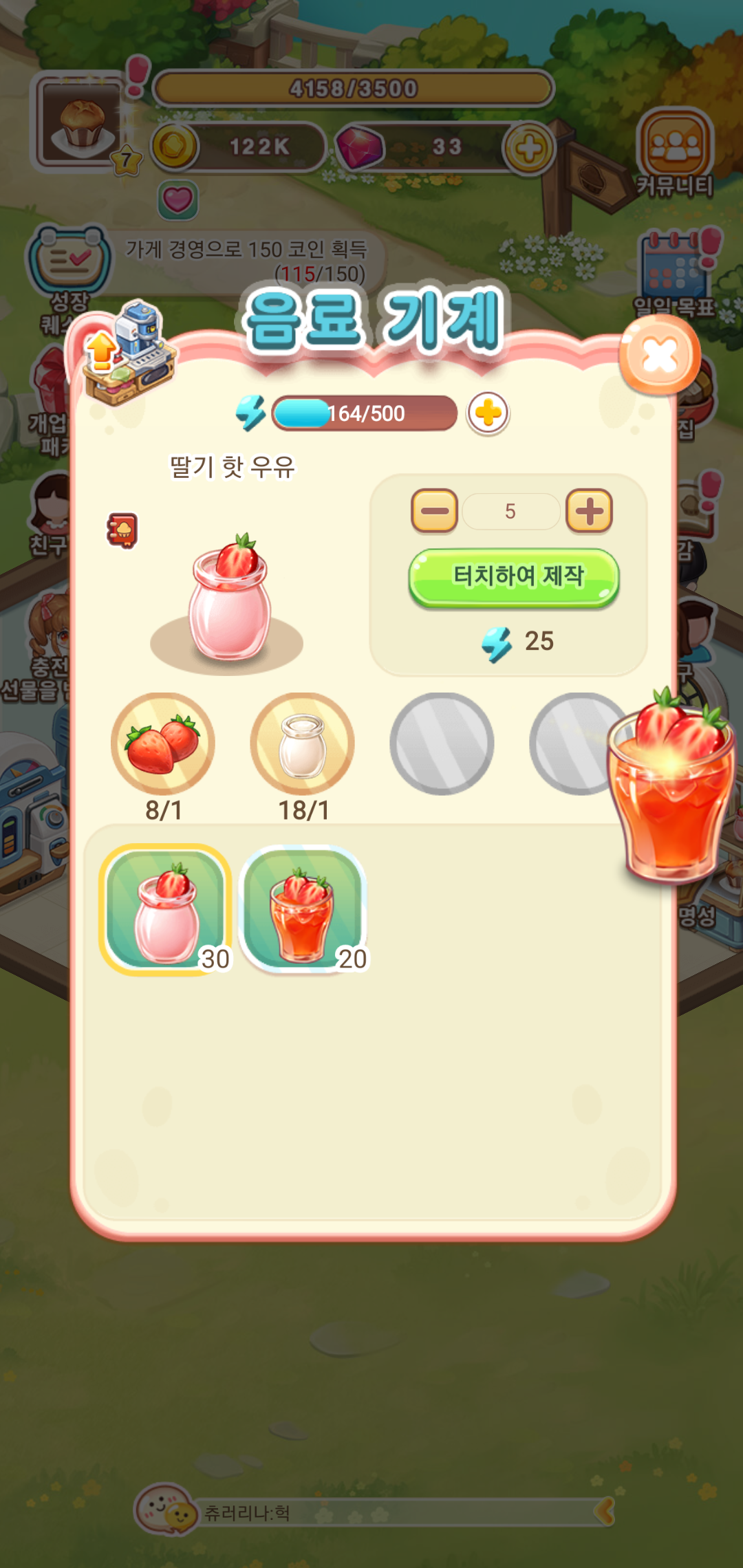 음료와 디저트를 만들기 위한 재료를 가공하거나, 가공한 재료를 바탕으로 원하는 디저트를 만드는 일도 클릭 한번이면 수월하게 제작할 수 있습니다. 단, 기계를 사용하는 데 있어 각기 다른 소모량의 에너지를 필요로 하게 되는데요, 광고를 통해 에너지를 충전하거나, 집사의 도움으로 에너지를 충전해 활용할 수 있어 부담 없는 플레이를 즐길 수 있습니다.