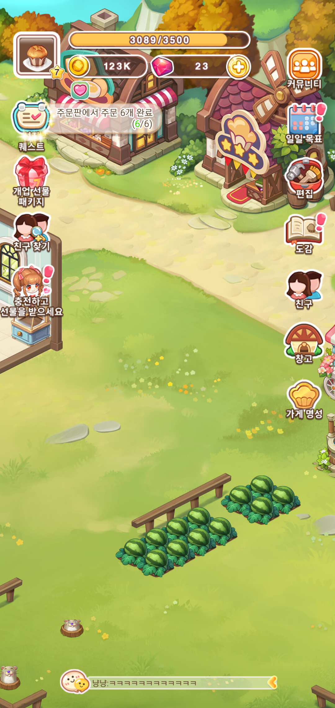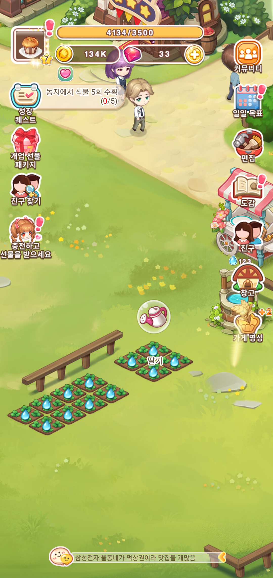 가게에서 판매하는 과일주스를 비롯한 쿠키등의 재료가 되는 농작물은 농장에서 키우고 수확까지 진행하게 되는데요, 원하는 농작물을 선택하고, 물을 주고 수확하는 과정이 바로 진행된다는 점에 있어 오랜 시간 기다리지 않아도 되는 점이 특징입니다.