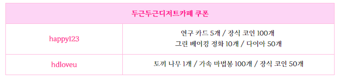 이제 막 두디카를 시작했다면 놓치기 아쉬운 정보 바로 쿠폰인데요, 가게 정보 아이콘을 클릭해 교환 쿠폰을 선택 상기 쿠폰번호를 입력하면 가속 마법봉을 포함해 카페 운영에 필요한 다양한 아이템을 받을 수 있으니 놓치지 마시고 꼭 챙겨보시기 바랍니다.
