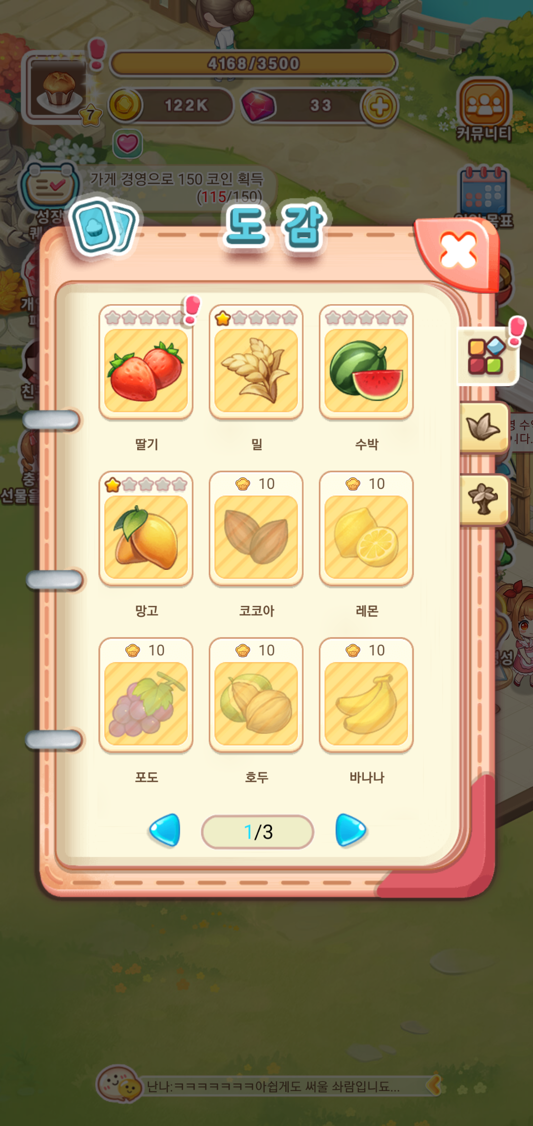 뿐만 아니라 도감을 완성하면 농작물을 업그레이드 하면업그레이드하면 씨앗을 뿌려 수확하는 횟수가 증가하기 때문에 더 많은 농작물을 수확할 수 있어 다양한 디저트를 만드는 농작물의 수확을 늘릴 수 있기도 합니다. 농작물마다 업그레이드 조건이 있어 이를 감안해 우선순위를 두고 도감을 업그레이드 하면 더욱 좋구요.