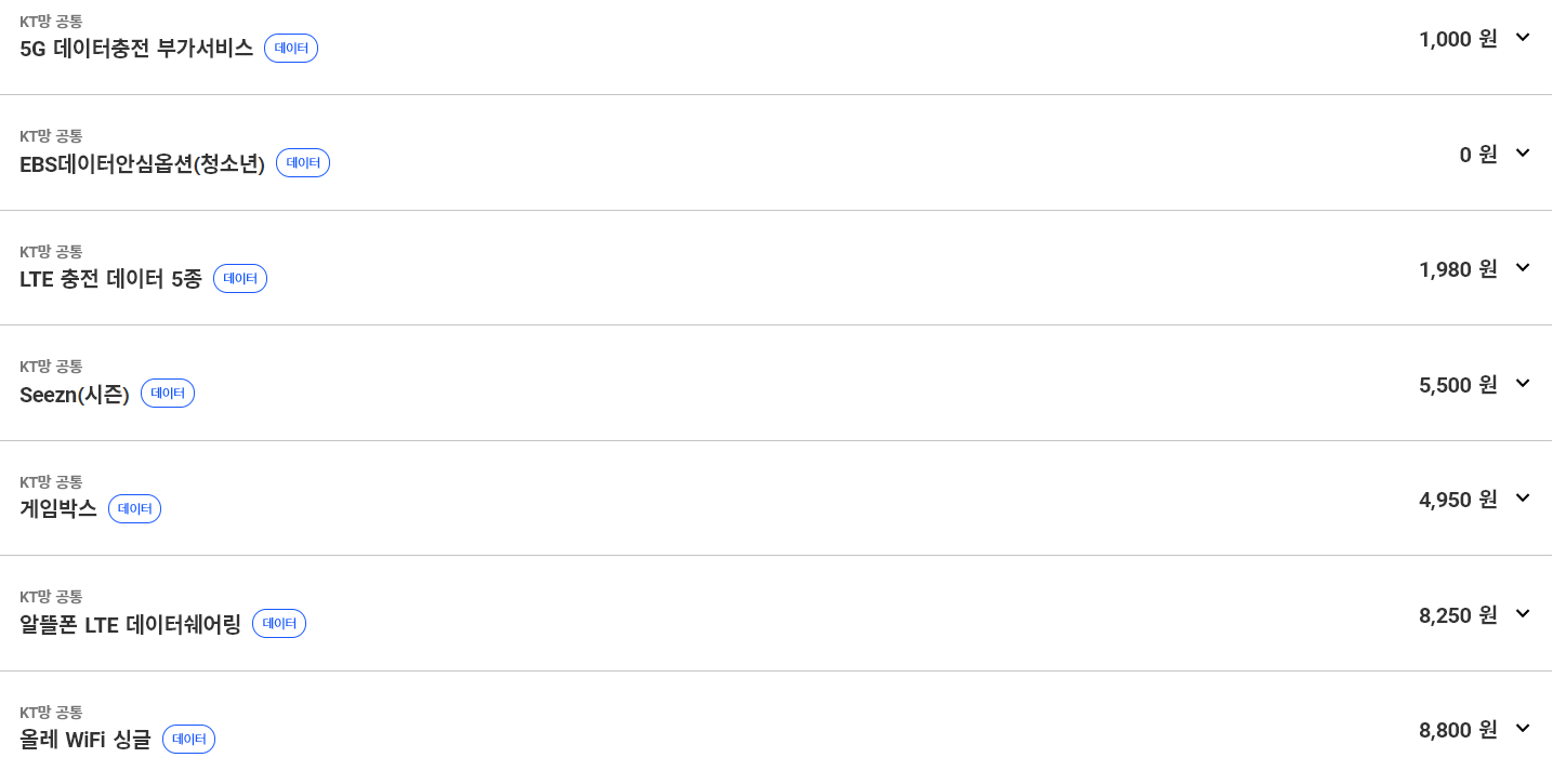 필요에 따라 선택 가능한 다양한 부가서비스도 준비되어 있는데요, 상황에 따라 부족한 부분들을 채울 수 있는 옵션들을 선택할 수 있고, 언제든 해지도 가능합니다. 특히 약정기간이 없어 언제든 가입과 해지도 가능한 점이 가장 큰 특징중 하나입니다.