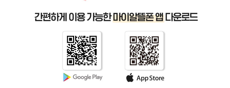 마이알뜰폰 서비스는 홈페이지가 아니더라도 구글 플레이 스토어와 앱스토어에서 간단하게 다운로드 받아 KT망을 사용하는 알뜰폰 사업자의 가입 회선 정보를 비롯해 사용량 및 요금, 분실 및 일시정지등 각종 업무도 볼 수 있어 무척이나 편리합니다.