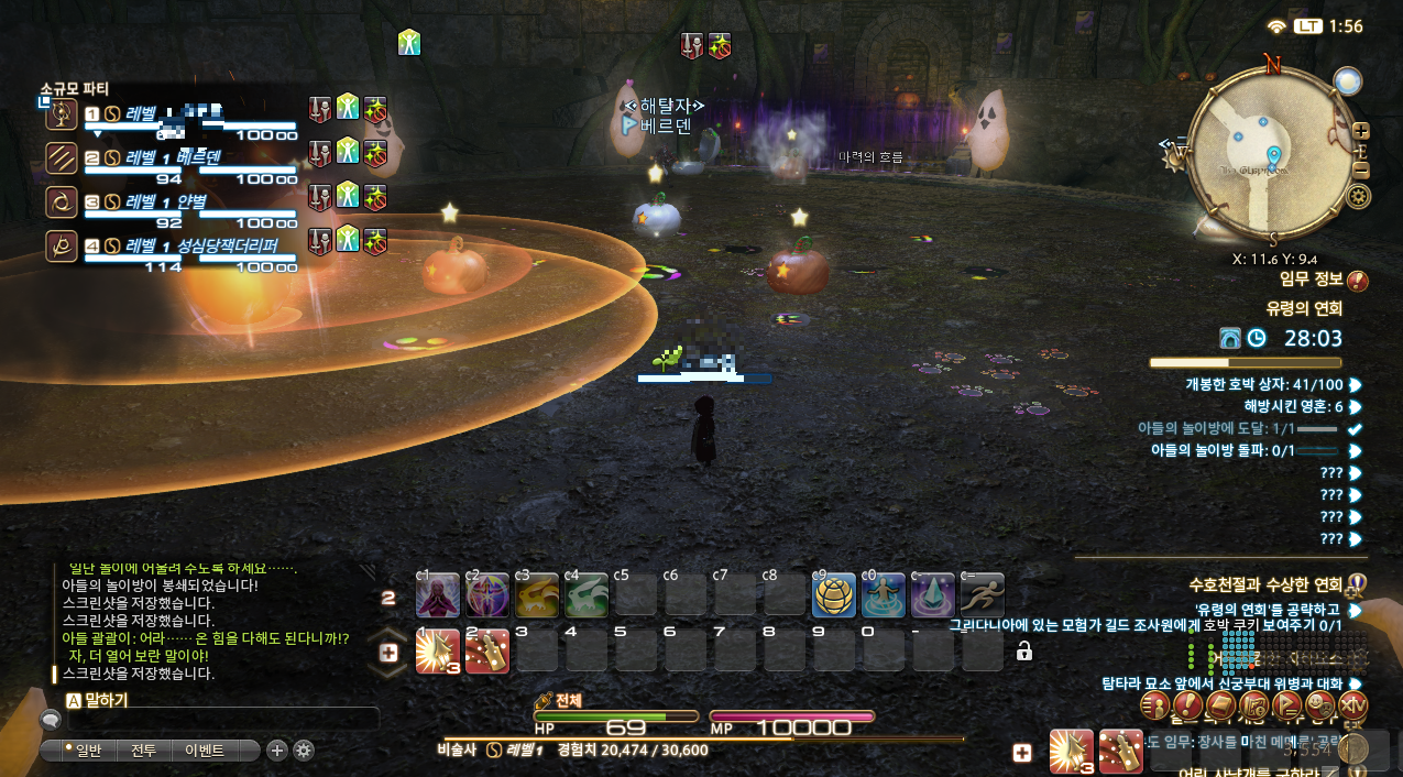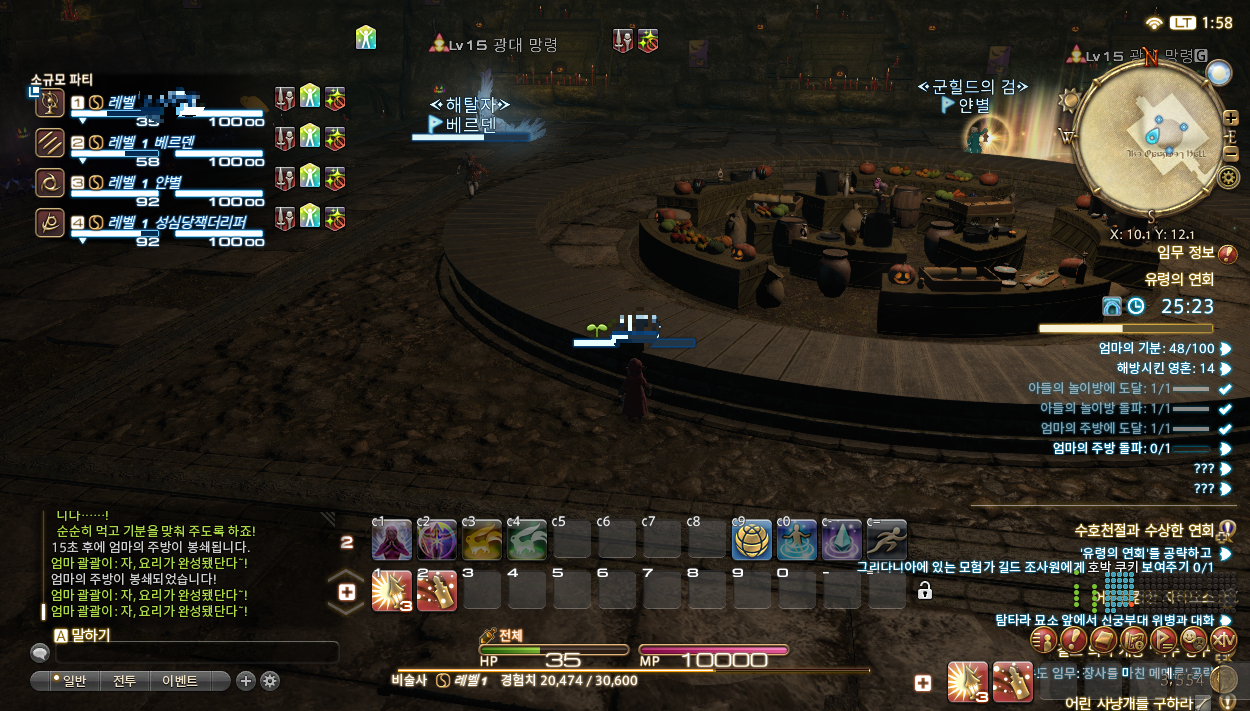 모험가 길드 조사원과 함께 아빠괄괄이의 음모를 확인하는 절차를 거친 후 미니게임 형태의 유령의 연회 던전을 진행하게 됩니다. 아들 괄괄이를 시작으로 엄마 괄괄이 아빠 괄괄이의 음모를 해결하는 방식으로 진행되는데요, 생각보다 어렵지 않아 다른 유저들과 함께 속도를 맞춰 진행하면 빠르게 클리어 가능합니다.