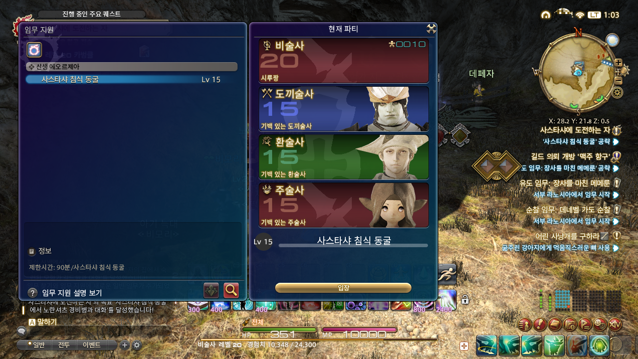새로운 이야기가 시작과 함께 이제 막 파판14를 시작하는 유저분들이라면 놓치지 말아야 하는 소식 바로 신규 유저를 위한 임무지원 패치가 진행되었다는 점입니다. 초반 임무 지원 시스템이 개선되면서 혼자서도 수월하게 진행 가능한데요, 던전 길이도 짧아져 빠른 레벨링이 가능해 3~4시간이면 30 레벨 달성까지 금방입니다.