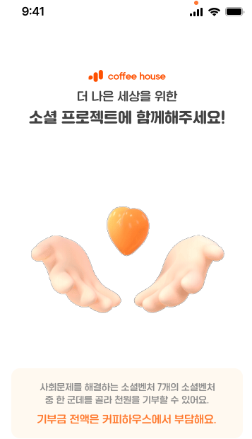그밖에도 사회 문제를 해결하는 소셜벤처 중 하나를 선택해 기부금을 전달하는 소셜 프로젝트와 친구를 초대하면 친구도 나도 1주씩 주식을 받을 수 있는 프로젝트가 함께 진행 중입니다. 주변에 아직 커피하우스를 모르는 분들이 있다면 이번 기회에 소개하고 주식을 함께 받는 것도 좋을 것 같습니다.