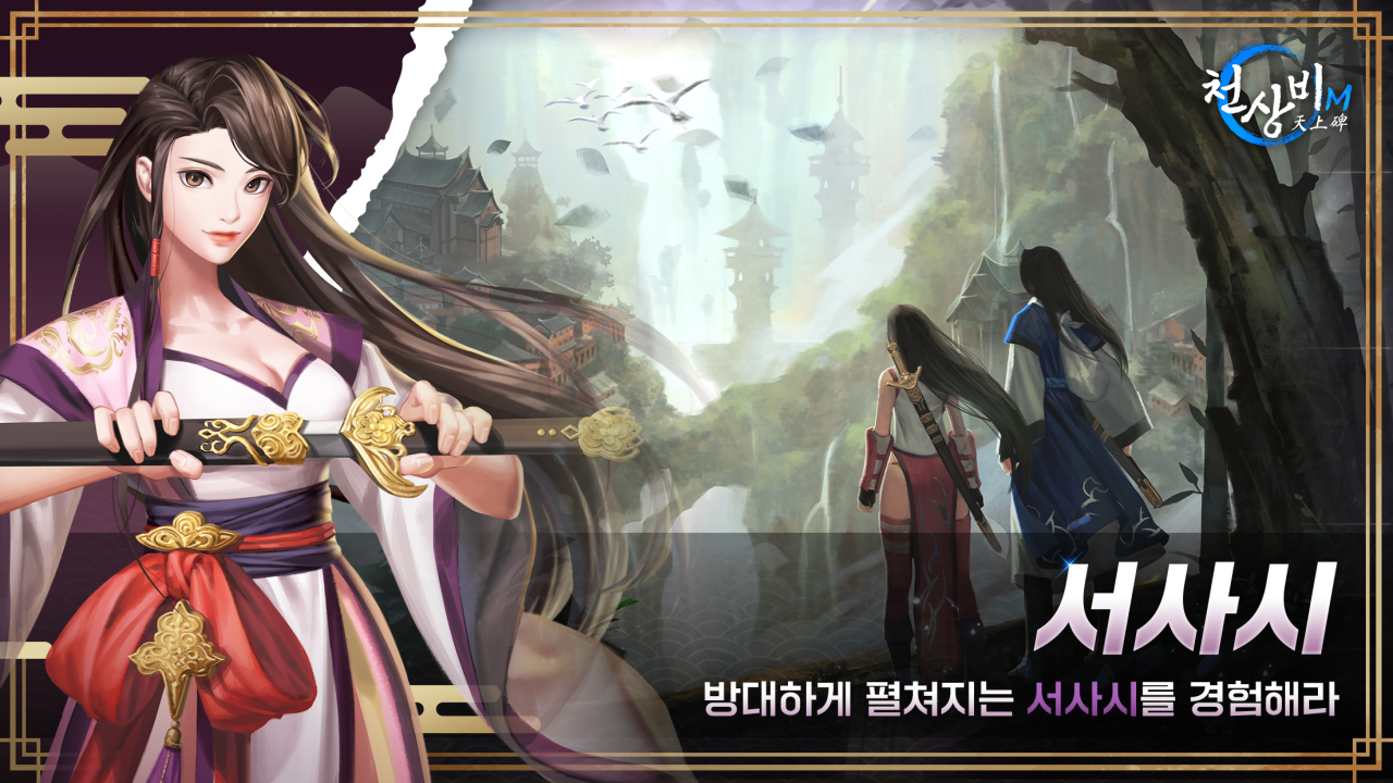 인기온라인게임 천상비가 모바일MMORPG로 출시된다는 소식이 전해지면서 무협게임을 좋아하는 유저들의 이목을 집중시키고 있는 중입니다. PC에서 즐기던 천상비를 완벽 재현한 그대로 모바일에서 즐길 수 있다고 하는데요, 장수 무협 국산 RPG 게임의 재미를 고스란히 담아내어 이번 출시가 더욱 기대되는 것 같습니다.