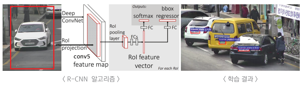 TajoEye LPR 인식 엔젠에서 Fast R-CNN 알고리즘을 이용해 50만여 장의 자연영상에서 추출한 번호판을 학습해 차량번호판차량 번호판 인식률 99%에 대항하는 인식률과 최근 필기체 문자 인식에서 99% 근접한 인식 성능을 보이는 DBN-CNN 심화 학습을 바탕으로 차량 번호판을 인식하고 있습니다.