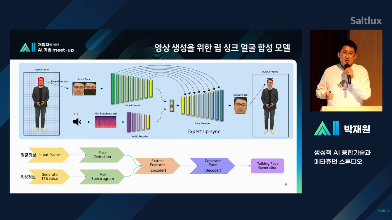 딥러닝 기반의 말하는 얼굴 생성 모델 연구 과정과 영상합성 품질 향상을 위한 딥러닝 모델 개선에 따른 내용도 공개되었는데요, 단계별 연구 과정을 보면 여러 고민을 통해 발전해 나간 모습이 인상적이었습니다. 또한 현재에 그치지 않고 향후 연구 개발 발전 방향도 제시하고 있어 앞으로에 대한 기대가 더욱 높아질 정도입니다.