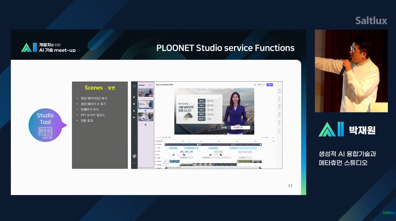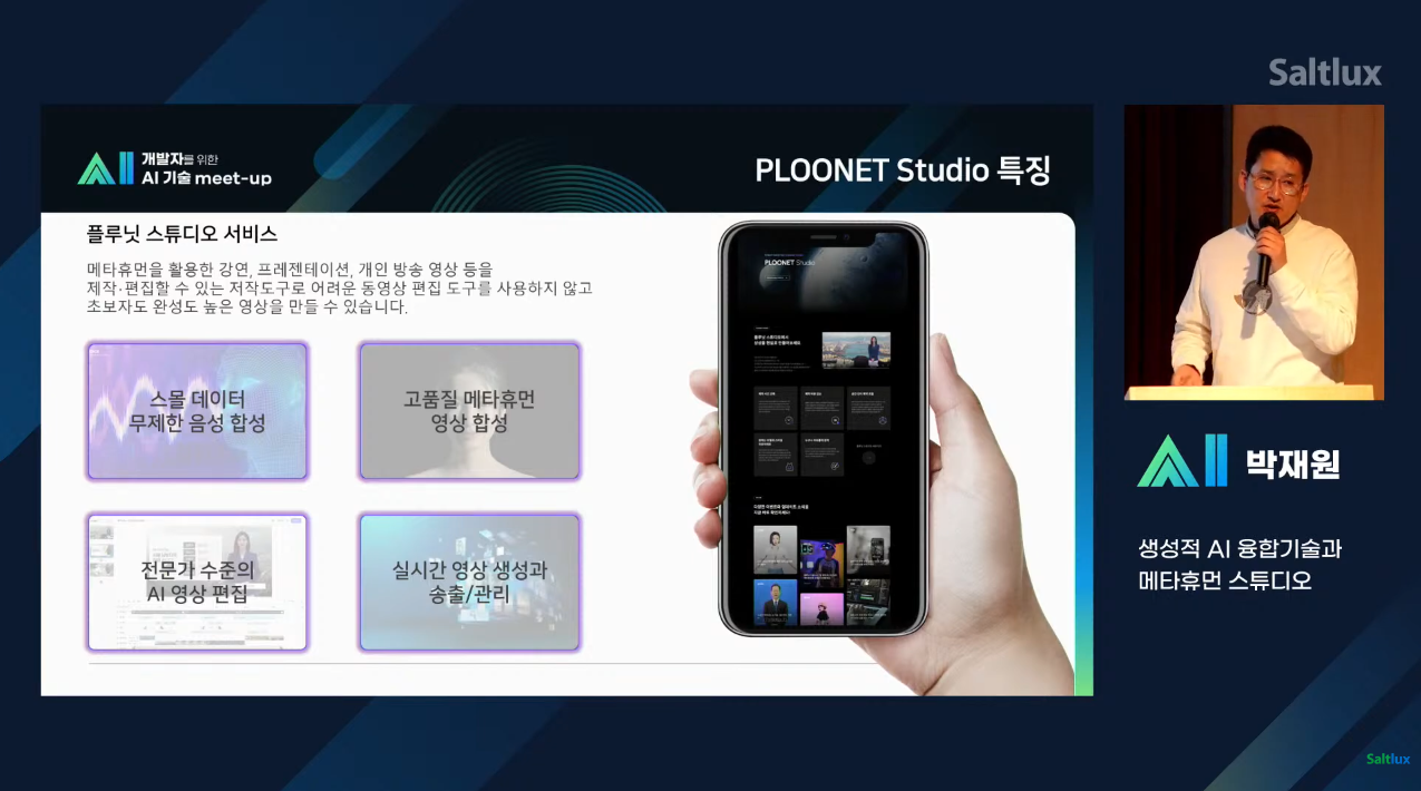 이번 밋업 행사에서 진행된 여러 내용 중 < 생성적 AI 융합기술과 메타휴먼 스튜디오 > 내용은 많은 분들의 관심을 받을 정도로 인상적이었는데요, 플루닛 스튜디오에 대한 소개와 주요 기능 및 기술 그리고 앞으로 개발 로드맵에 대한 내용을 통해 발전하는 AI에 대해 체감할 수 있을 정도였습니다.