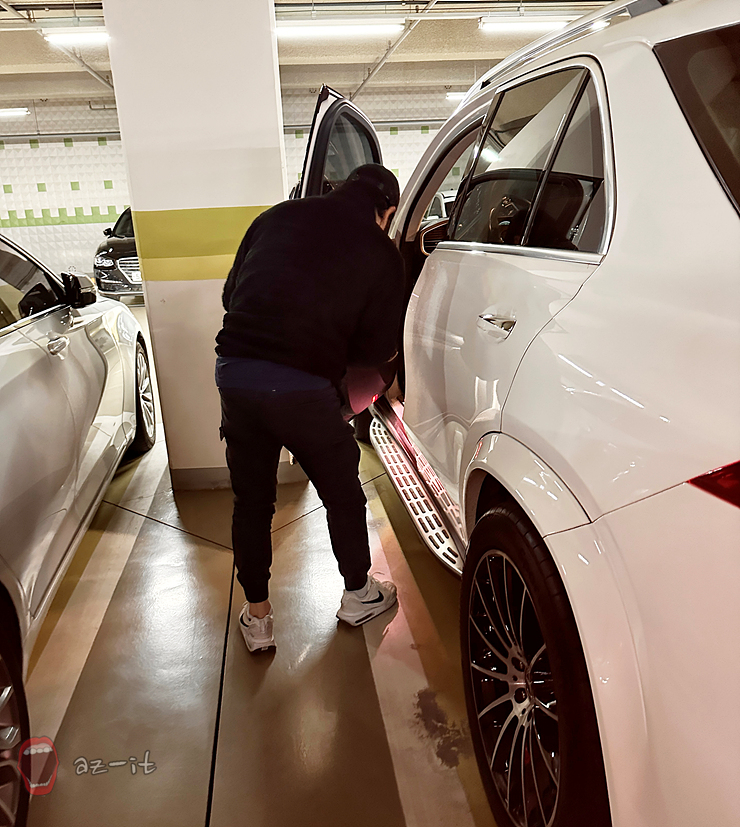 전문 차량 평가사분은 내방 당일 오전 일정을 확인하고 약속시간에 맞춰 오셨습니다. 차 넘버 확인을 시작으로 차량의 전면과 후면, 측면등의 다양한 각도에서 사진을 촬영해 기록하였는데요, 외부 상태를 점검하는 것은 기본, 휠 상태와 도어 상태 등 꼼꼼하게 체크하는 모습이었습니다.