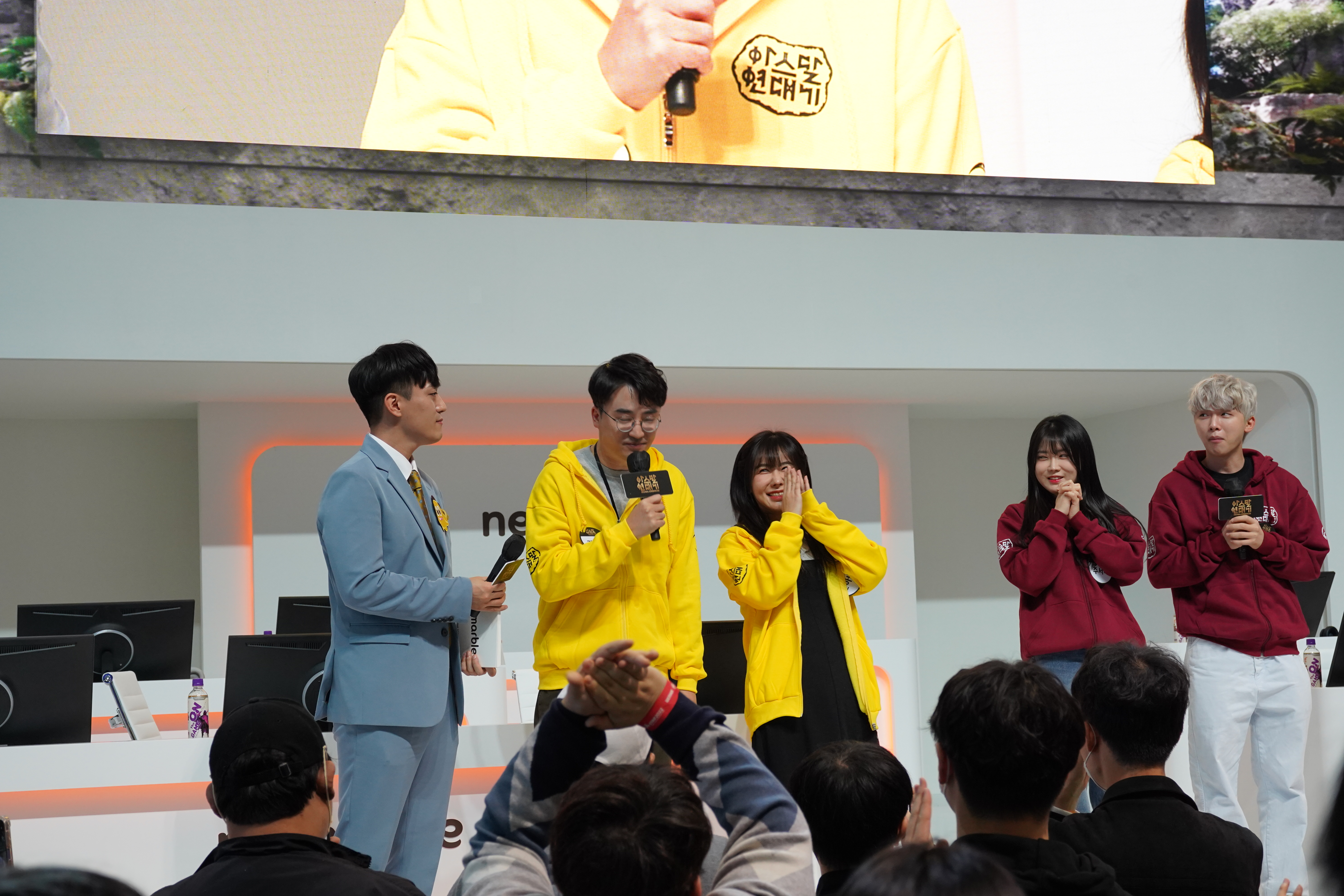 이어서 진행된 필드보스 처치에서는 막상 막하의 접전이 이어졌는데요, 치열한 접전 끝에 아스달 팀이 승리를 거머쥐었습니다. 전광판을 보며 경기를 즐기는 재미도 있었지만 부스를 찾은 다른 관람객과 함께 아스달연대기 프로그램을 보며 즐길 수 있다는 게 참 즐겁더군요.