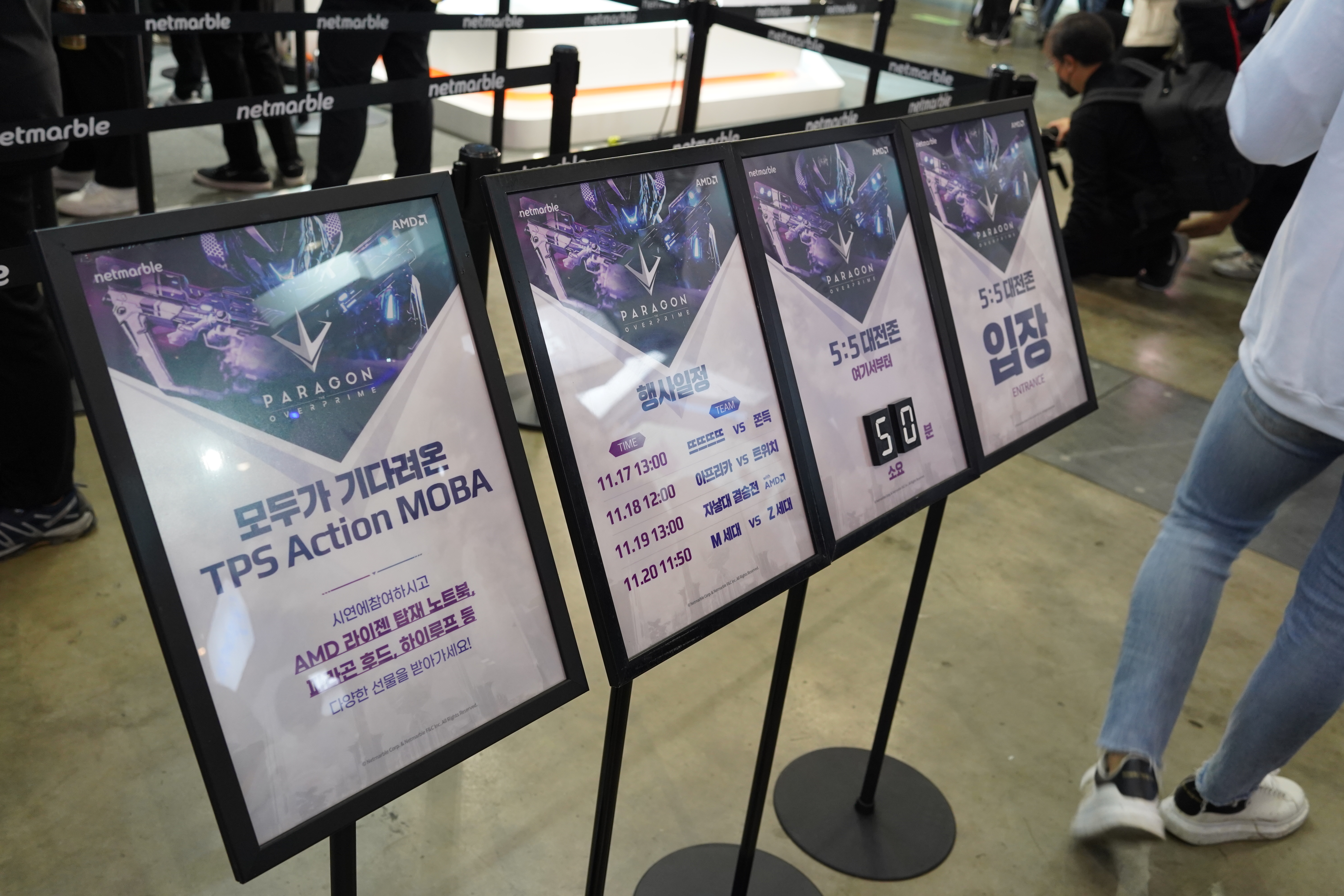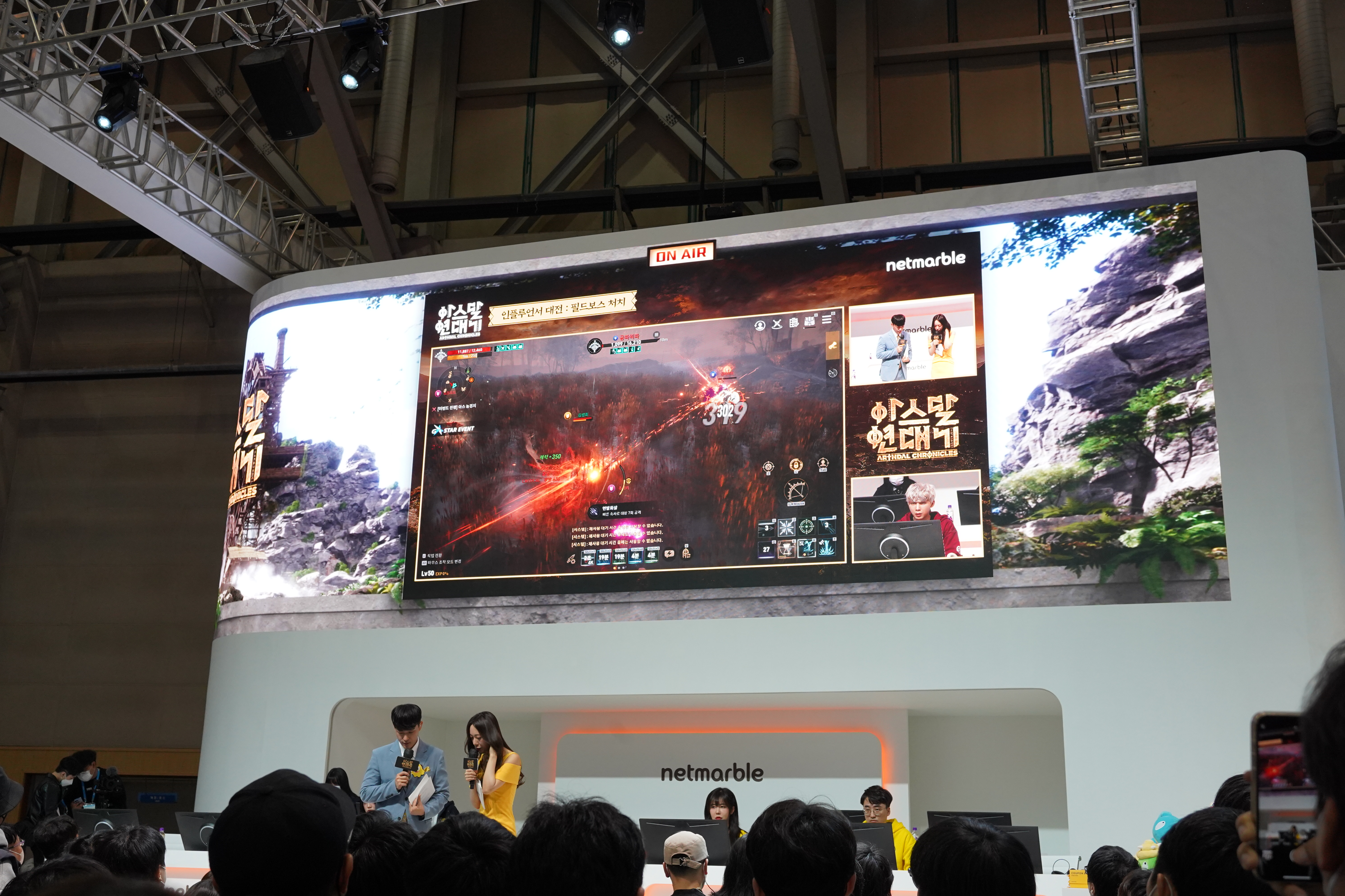 멀리서도 한눈에 확인할 수 있었던 넷마블 부스! 출시를 앞두고 있는 아스달연대기, 나 혼자만 레벨업, 파라곤, 하이퍼 스퀘드를 필두로 한 부스 구성이 인상적이었습니다. 부스를 가득 메우고 있는 인원들은 넷마블 부스에 대한 기대감이 얼마나 높은지 여실히 느껴질 정도이기도 하고 말이죠.