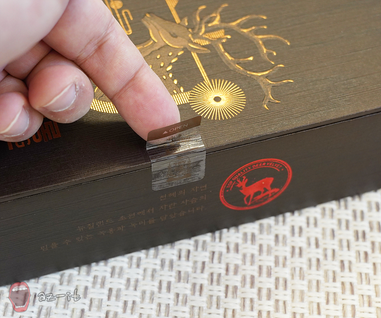 소분되어 있는 케이스를 열면 공기가 통하지 않도록 단단하게 밀봉되어 있는 내용물을 확인할 수 있습니다. 손가락 한마디 정도 되는 크기의 내용물 안에 녹용 원물기준 1g 이 포함되어 있어 하루 한 알이면 충분할 것 같습니다.