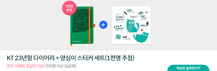 그 외에도 귀즈 이벤트에 참여하고 KT23년형 다이어리와 양심이 스티커 세트를 받을 수 있는 이벤트와 초대한 친구가 신규 가입하면 최대 이마트 5만 원 상품권등의 선물이 주어지는 이벤트도 진행되고 있어 kt M모바일 알뜰폰 요금제 가입 시 받을 수 있는 혜택이 어마어마합니다.