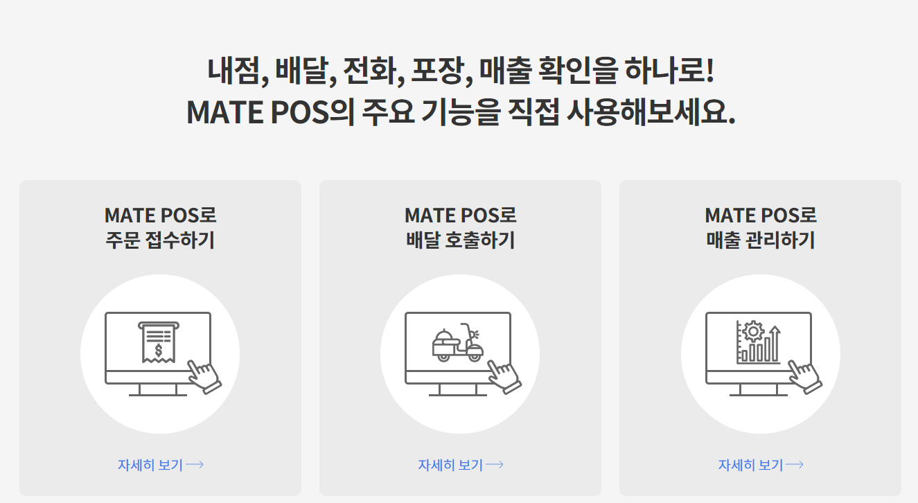내점 운영과 배달 주문을 한번에! 국내 주요 배달 앱 주문 접수부터, 배달대행 호출까지 간편하게 연동하여 사용하세요! 쉽고 똑똑한 매장 운영관리, MATE POS(메이트 포스)와 시작하세요!