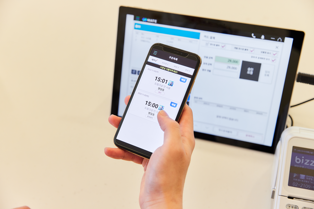배달앱과 배달 대행사와 연동되는 점도 메이트 포스의 장점인데요, 배달앱으로 접수된 주문을 포스 화면에서 바로 확인 가능하고, 별도의 프로그램 조작을 하지 않아도 포스 화면에서 바로 배달대행을 부를 수 있서 한 번에 모든 과정을 처리할 수 있습니다.