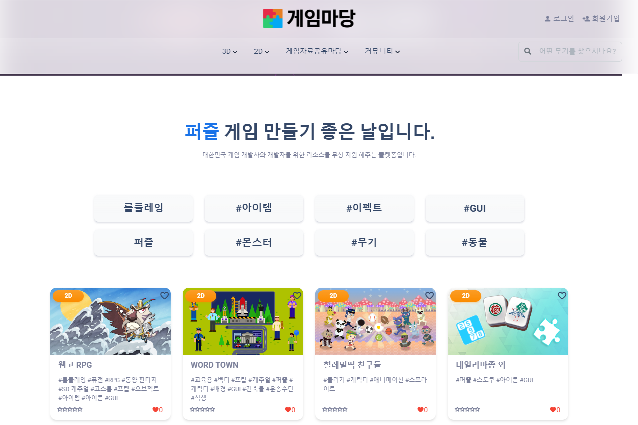 게임 개발을 고민하고 있거나, 게임 리소스 확보를 위해 고심하고 있다면 한국게임개발자협회에서 운영하는 게임마당을 통해 많은 도움을 받을 수 있는 만큼 망설이지 말고 도전해 보시는건 어떨까요? 게임 개발 시 가장 고민되는 게임 리소스에 대한 어려움. 이제 게임마당을 통해 시원하게 해결해 보시기 바랍니다.