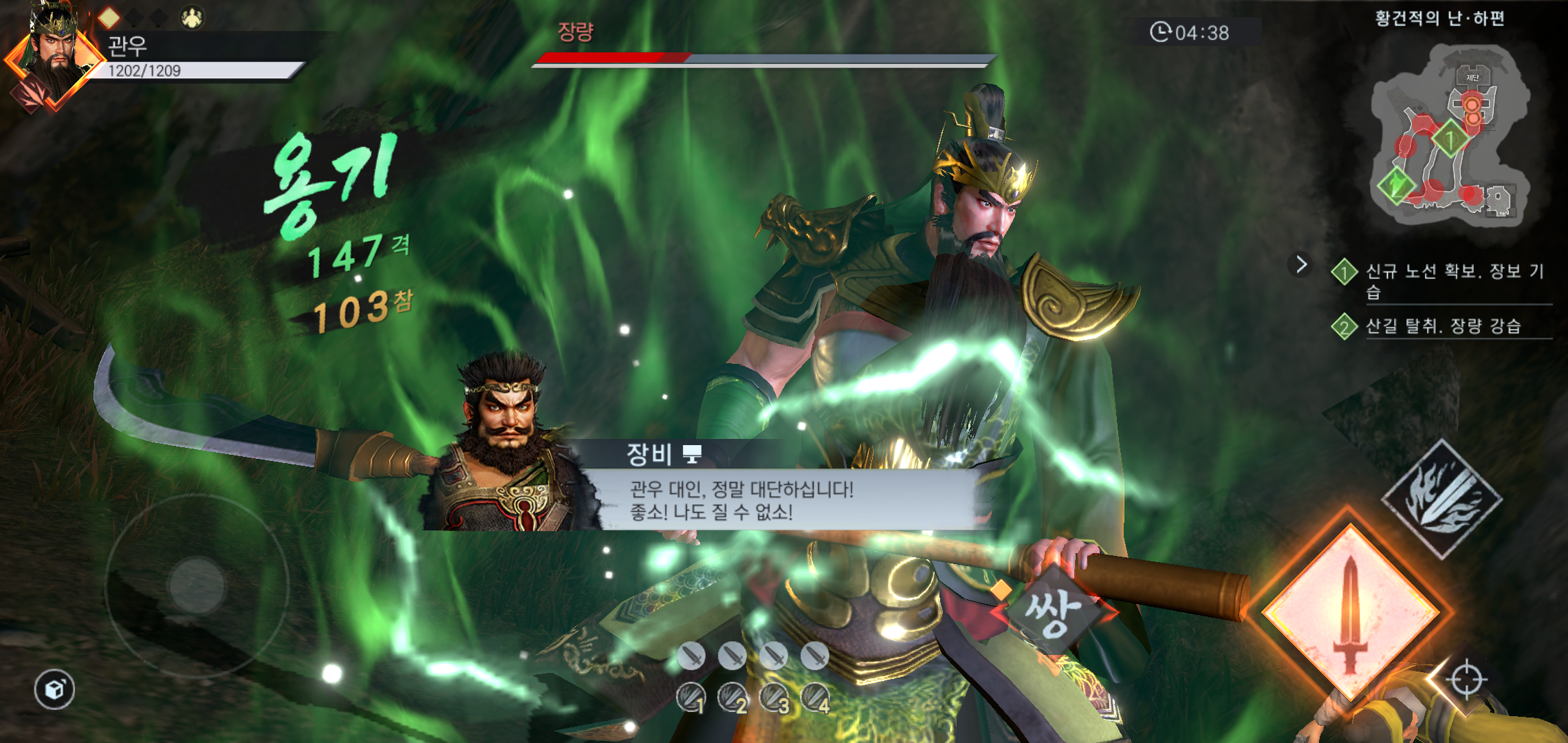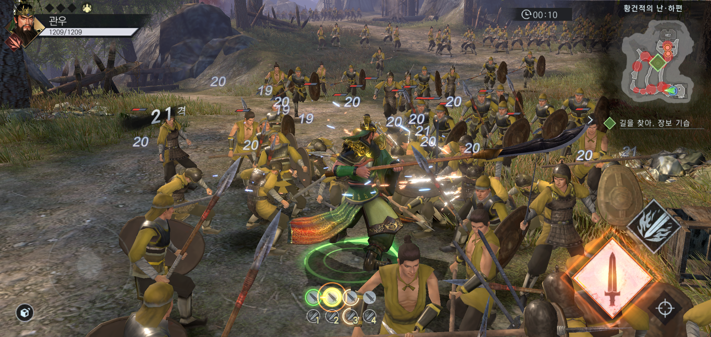 장수와 맞붙는 상황의 경우 일반적인 전투뿐만 아니라 상대를 제압하기 위한 힘싸움도 진행되어 전투의 긴장감을 더욱 높여주고 있기도 합니다.