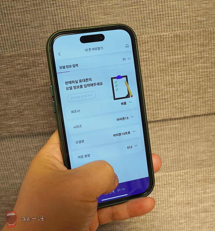 내 폰 바로 팔기의 경우 제조사와 시리즈 그릭 상세모델과 저장용량을 선택한 후 휴대폰의 상태를 선택하게 됩니다. 휴대폰 상태는 미세흠집, 흠집, 찍힘, 파손, 해당 없음으로 구분 되어 있어 판매하고자 하는 중고폰의 상태에 따라 해당하는 내용을 선택하면 됩니다.