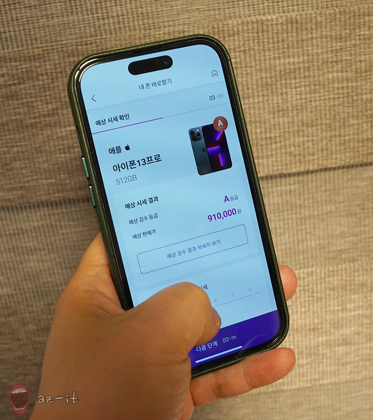 셀로 내폰바로팔기를 통해 예상되는 아이폰 13 프로 시세는 A등급으로 책정되어, 91만 원으로 확인되었는데요, 생각보다 높은 비용으로 확인되어 이만하면 괜찮다는 생각이 절로 들었습니다. 무엇보다 중고폰시세는 등급에 따라 차이가 상당히 많이 나는데, 셀로는 A/B/C등급으로 구분되는 것과 달리 중간에 B+등급 한 단계가 더 준비되어 있어 조금이라도 더 높은 시세로 판매하는 것이 가능합니다.