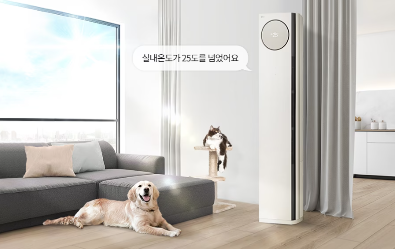반려동물이 있는 가정이라면 아이가 혼자 있는 시간 동안 에어컨 사용에 대한 고민을 할 수밖에 없습니다. LG 휘센 타워에어컨 펫케어 기능은 설정한 온도에 도달하면 ThinQ 앱 알림이 발송되고, 펫이 있는 실내 온도를 확인해 에어컨을 작동해 반려동물이 무더위에 지치지 않도록 펫케어를 할 수 있어 유용합니다.