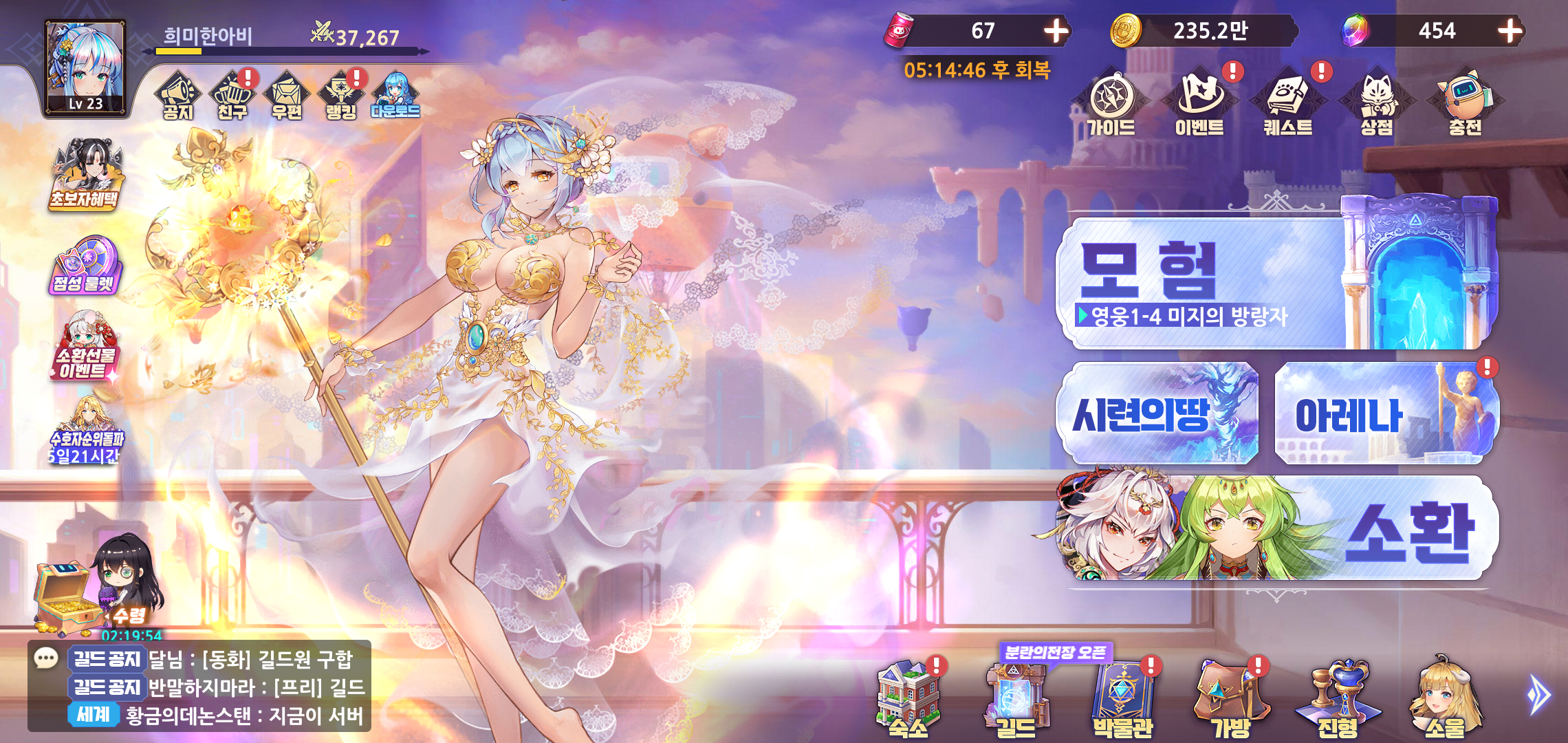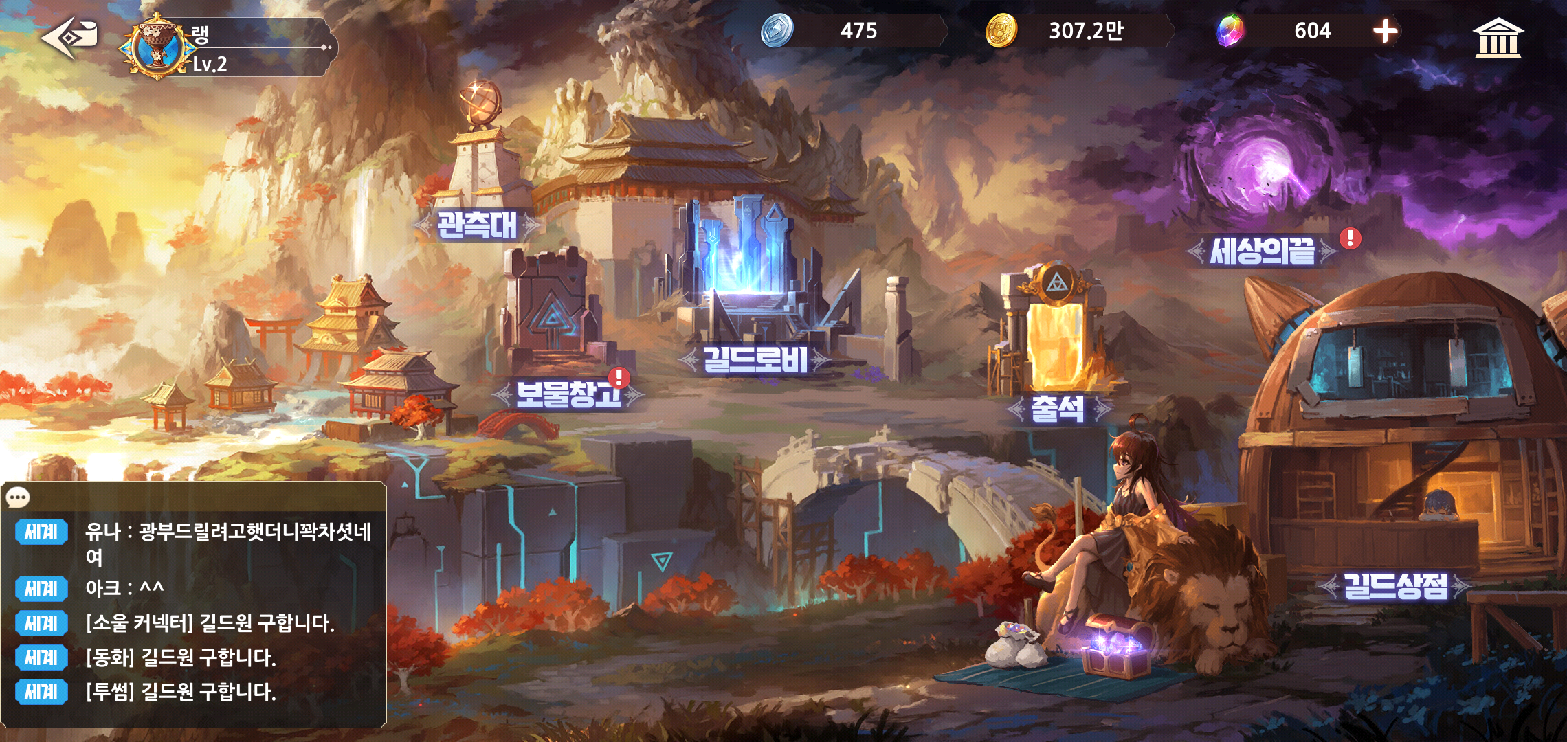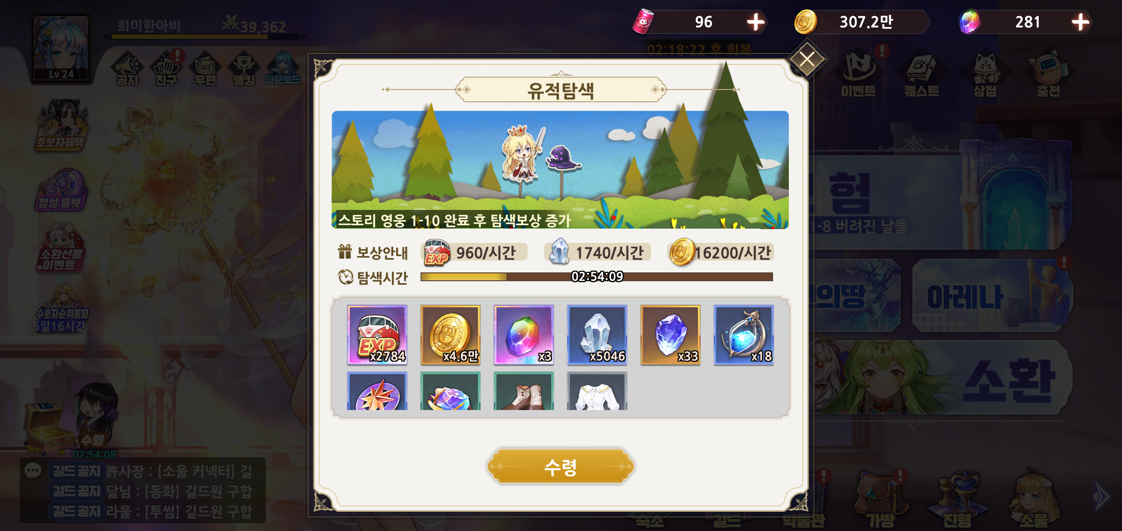 길드는 시작과 함께 꼭 가입하시는 걸 추천드립니다. 보물창고를 통해 길드원들의 활동에 따른 보상을 획득할 수 있는 데다, 추가 아이템 획득도 가능하기 때문인데요, 길드에 가입여부에 따라 획득 가능한 아이템의 차이가 상당하다고 할 수 있는 만큼 필수적입니다.
