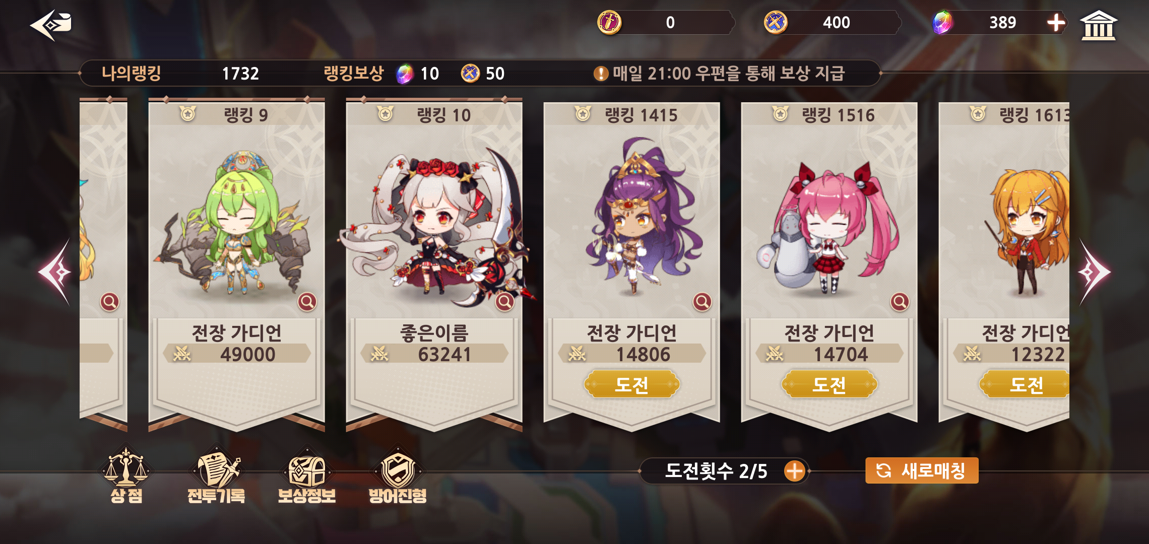 아레나의 경우 유저들과 랭킹을 겨루는 플레이르 PVP를 즐길 수 있어 보유한 5명의 영웅을 활용한 전투를 즐길 수 있습니다. 랭킹에 따른 보상도 상당하고 퀘스트 완료를 통한 보상까지 기대할 수 있어 모험과 더불어 꼭 챙겨야 할 콘텐츠이기도 합니다.