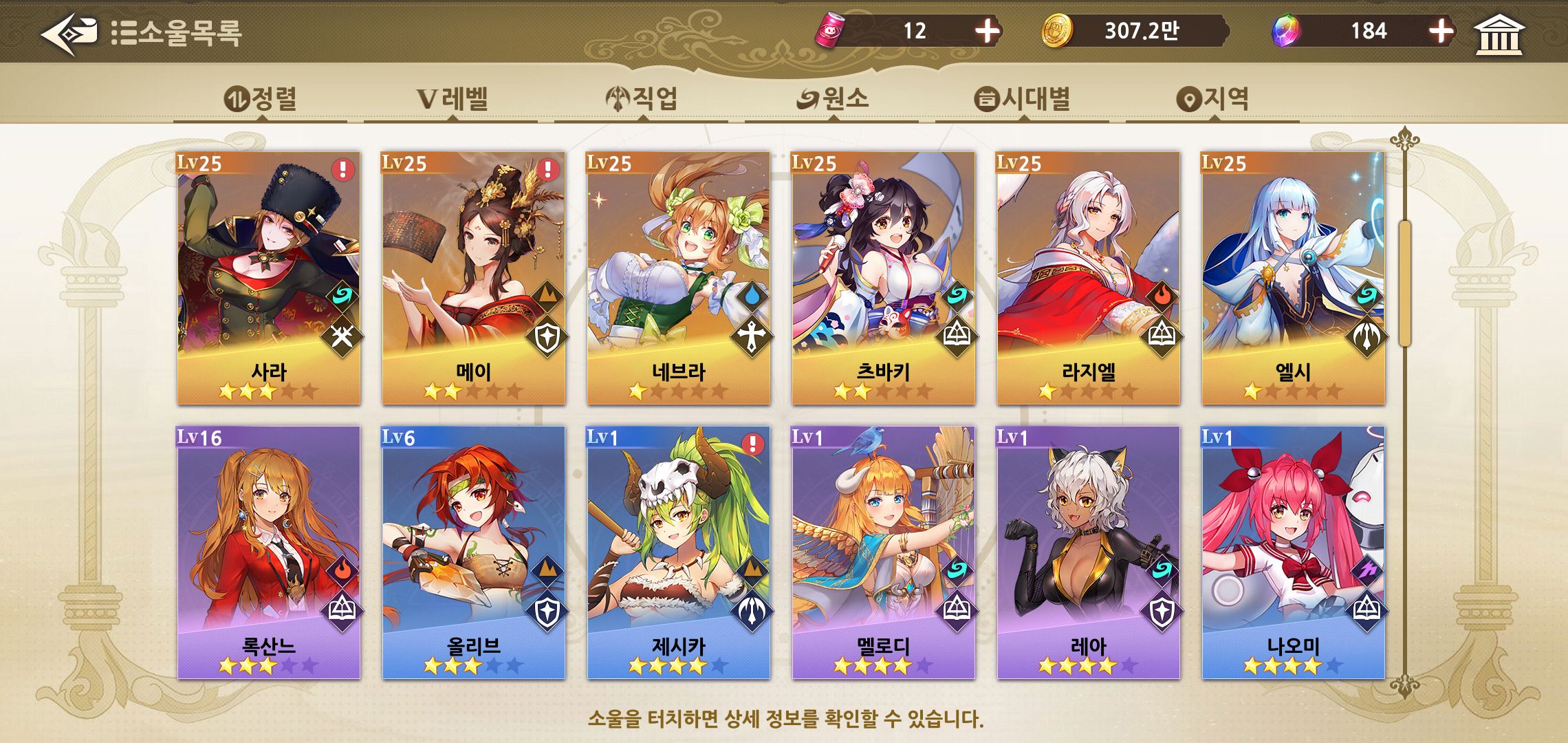 획득한 소울은 꾸준한 육성이 필요합니다. 모험을 떠나기 위한 덱구성시에도 직업과 전투력을 감안한 구성이 필요한데요, 사실 하나 둘 수집을 하다 보면 모험에 필요한 전투를 위한 육성이 아니더라도 자연스럽게 전체적인 소울을 육성하는 구조로 되어 있어 재미있습니다.