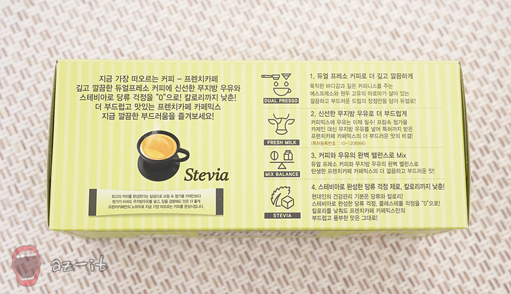 커피믹스를 좋아하지만 높은 칼로리와 설탕 그리고 마시고 난 후에 텁텁함 때문에 마실 때마다 왠지 모를 아쉬움이 남았던 시간들. 이젠 프렌치카페 카페믹스 스테비아를 통해 훌훌 털어버릴 수 있을 것 같습니다. 건강한 커피믹스로 여유로운 티타임을 갖고 싶은 분들이라면 잊지 말고 꼭 드셔보시길 추천드립니다.