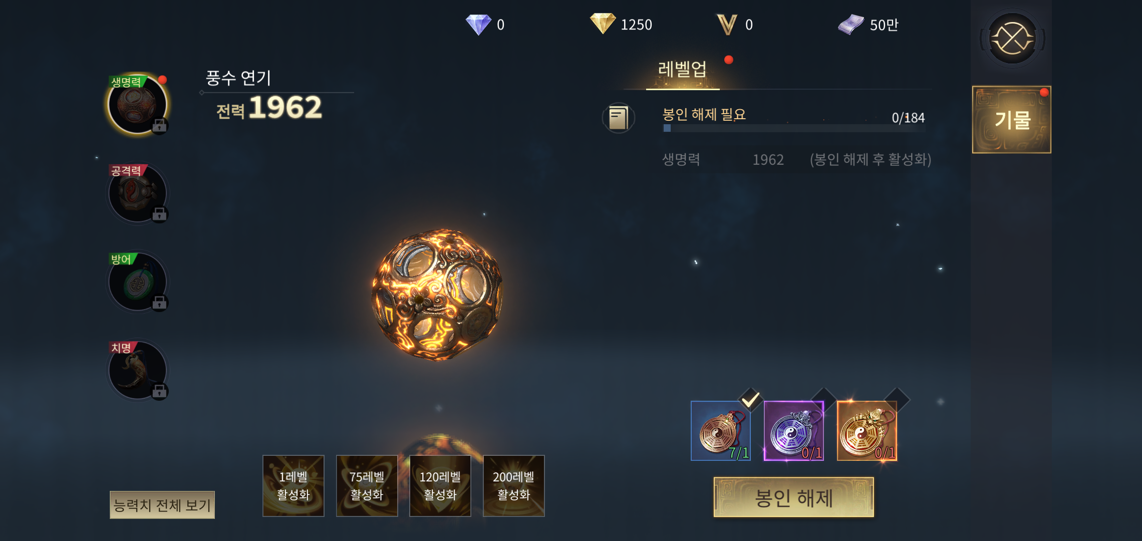 메인스토리를 진행하면서 보물을 찾고 캐릭터가 성장하면서 전투력을 높이는 것 외에 신분 상승을 통해 추가 능력치를 받는다던가, 어디서든 동행하고 능력치를 올려주는 펫과 봉인을 해제하면서 그 진가를 보여주는 기물등 다양한 콘텐츠를 즐길 수 있어 지루하지 않은 플레이를 즐길 수 있습니다.