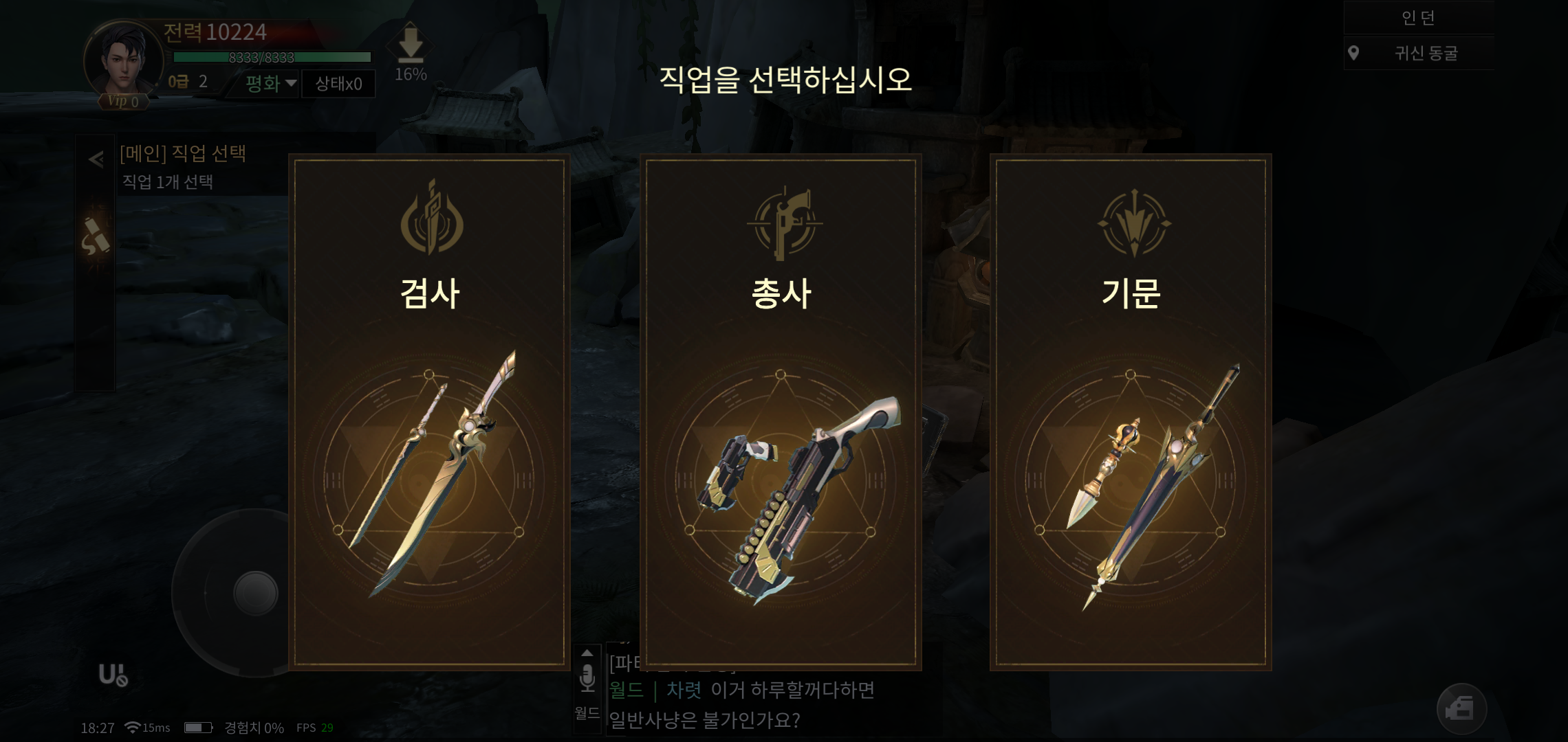 선택가능한 직업 중 최종 결정한 직업 바로 기문입니다. 기분은 우산을 주 무기로 사용하는 조금은 특별한 클래스인데요, 전투 시 우산을 사용해 발동하는 스킬의 경우 무기의 특별함을 가진 동시에 눈길을 사로잡는 이펙트까지 갖추고 있어 부족할 것 없는 클래스인 만큼 직업 선택을 고민하는 분들이라면 파괴력과 긴 사정거리를 가지고 있는 기문을 선택하시길 추천드립니다.