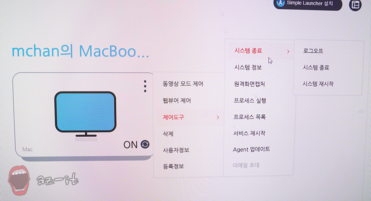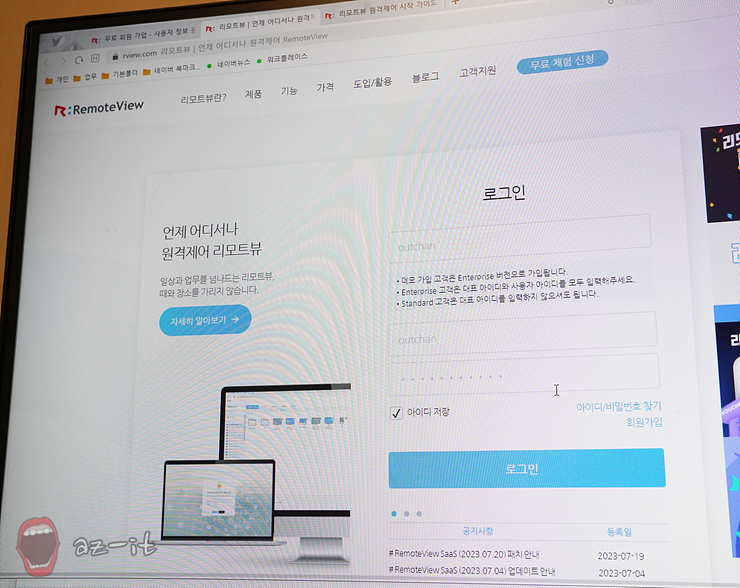 본격적인 원격제어를 진행하기 위해선 로그인 후 에이전트 설치 프로그램을 다운로드 받아 설치한 후 원격제어 리스트 등록해야 합니다. 에이전트 설치 파일이 차지하는 용량이 극히 미미할 정도로 가볍고, 설치와 등록도 간단한데요, 설치 후 사용자 아이디와 비밀번호를 입력해 사용자를 인증하면 바로 사용 가능합니다.