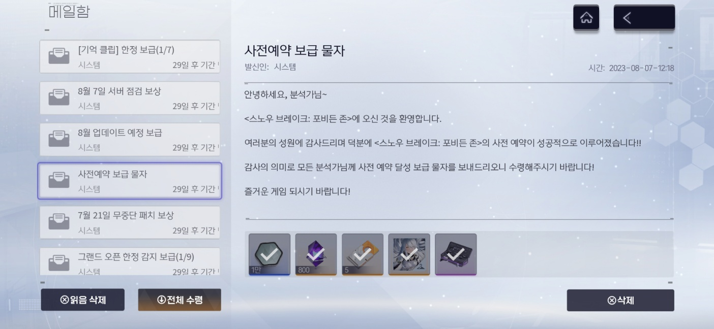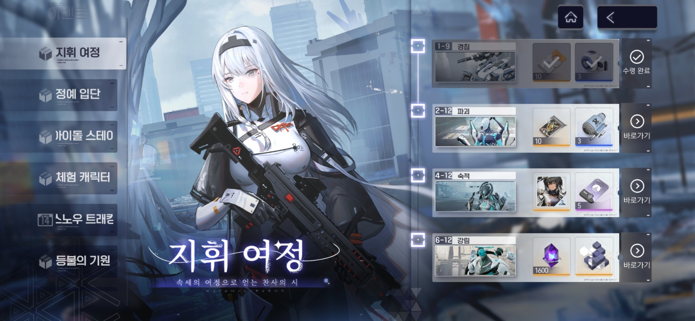 초반 캐릭터 획득이나 필요한 물자는 사전예약 보급 물자를 활용하는 걸 추천드립니다. 앞서 사전예약을 진행하지 않았더라도 이벤트를 통해 풍성한 아이템 수령이 가능하고, 스토리를 따라 스테이지를 쭉쭉 밀어야 준비된 콘텐츠가 오픈되는 만큼 시작과 함께 허들이 걸리지 않는 한 쭉쭉 스테이지를 클리어하는 걸 추천드립니다.
