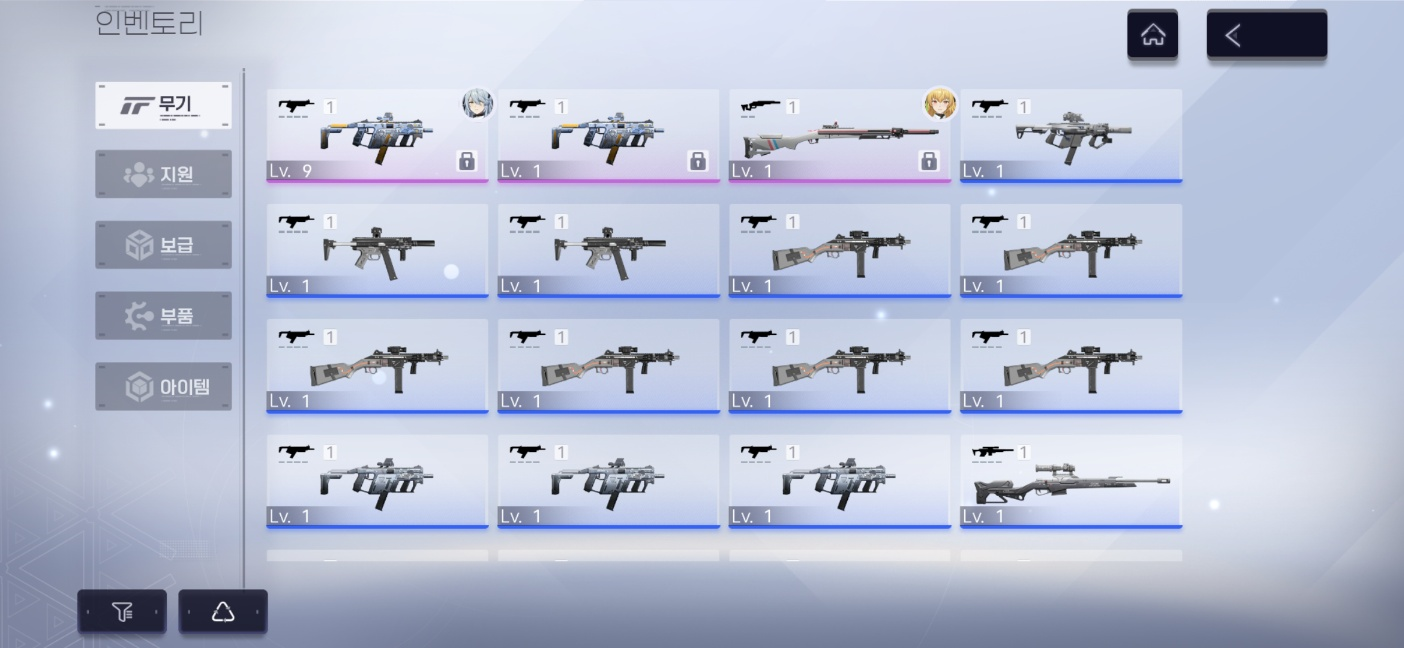 미소녀들은 각기 자신에게 맞는 무기를 사용하여 전투를 진행하게 됩니다. 총기의 경우 슈팅RPG가 가진 특징에 걸맞은 타격감과 상황에 따라 캐릭터를 선택해 유연하게 전투를 진행할 수 있도록 구성되었는데요, 단순히 총기를 사용하는 것 외에도 엄페라던가 회피등 주변 지형지물을 이용한 전략적인 전투를 벌일 수 있어 흥미진진합니다.