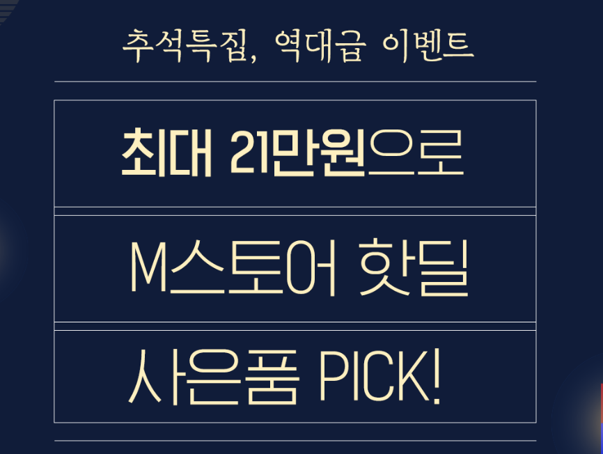 9월 추석을 맞이한 다양한 혜택도 준비되어 있는데요, 9월 한정 최대 21만 원의 혜택이 준비되어 있고, kt M모바일 고객이라면 이용 가능한 M스토어 쇼핑몰에서 차별하된 멤버십 혜택도 받을 수 있습니다. 뿐만 아니라 편의점, 마트, 오픈마켓 다이렉트몰 유심 가입 혜택부터 친구초대 이벤트, 추석선물 이벤트등 어마어마한 이벤트가 준비되어 있으니 자세한 내용을 확인해 보고 모든 혜택을 받아보시기 바랍니다.