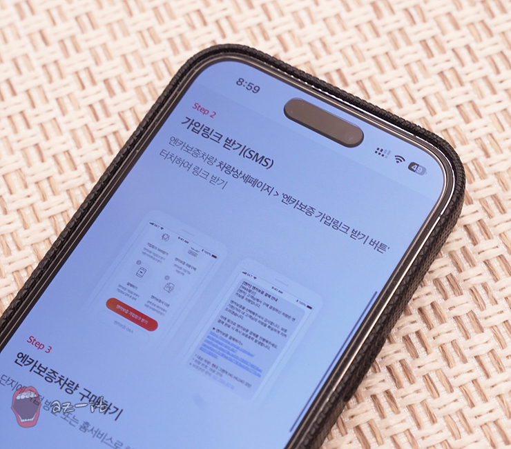 차량을 구매했다면 사전에 받아둔 엔카보증 SMS 가입링크를 클릭해 가입 정보를 입력하고 보증료를 결제해야 합니다. 보증료를 결제하면 엔카 보증서와 세부약관 다운로드가 가능합니다. 이후 선택사항으로 엔카닷컴 마이페이지에서 엔카보증코드를 등록하면 해당 차량에 대한 이력관리가 가능합니다.