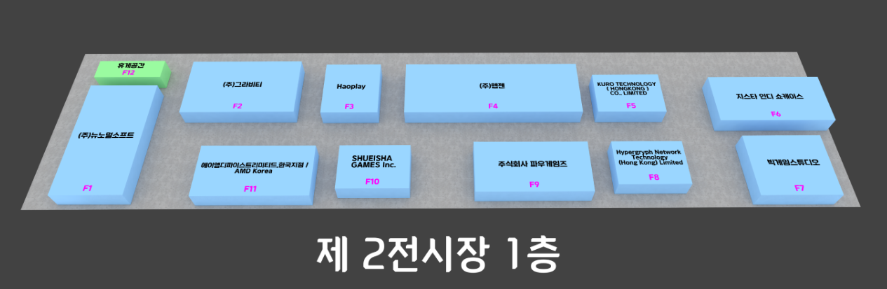 템페스트 개발사 뉴노멀소프트는 제 2전시장 1층 가장 왼쪽 부스인 F1에 자리 잡고 있습니다. 휴게공간과 마주하고 있어 행사를 둘러보다 잠시 쉬는 타이밍에 맞춰 둘러보는 동선을 구성하기에도 딱 좋은 자리인 것 같습니다.