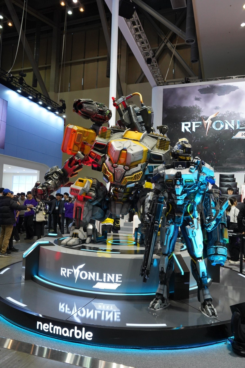 RF 온라인 넥스트부스는 이 때만 기다렸다는 듯 정말 많은 관람객들이 몰려 있었습니다. 시연을 즐기려 기다리면서 지스타2023에서 최초 공개하는 게임 소개 영상이라던가, 곳곳에 전시된 조형들을 둘러보았는데요, 거대 로봇 신기를 활용한 RF 온라인 넥스트의 특징이 고스란히 담겨 있어 시연에 대한 기대감이 더욱 높아질 정도였습니다.