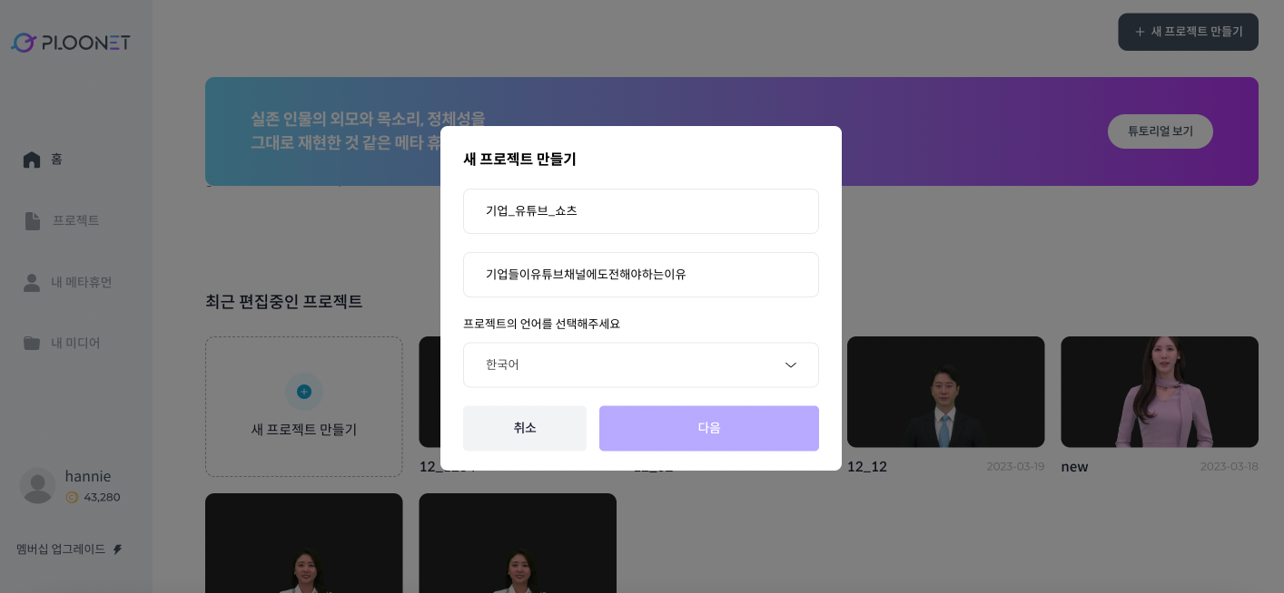 생성형 AI 서비스 플루닛 스튜디오에서 영상을 제작하는 방법도 간단합니다. 만들고자 하는 영상의 제목을 입력한 후 마음에 드는 메타휴먼을 선택하게 됩니다. 메타 휴먼은 기본으로 제공되는 인원 외에 크레딧으로 원하는 가상인간을 선택할 수 있어 선택의 폭이 넓은 점이 특징입니다.