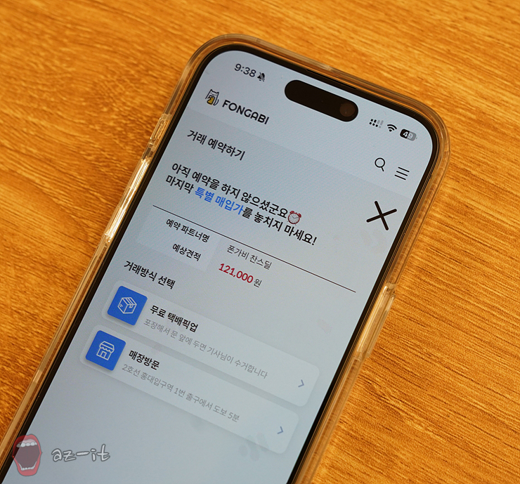 판매할 파트너사를 선택한 후에는 무료 택배 픽업이나 매장 방문을 선택해 제품을 발송 할 수 있었습니다. 무료 택배 픽업도 박스 겉면에 [ CJ대한통운 반품-폰가비 ]라고 기재해 내 놓으면 택배사에서 알아서 수거하고 가져갈 수 있어 무척이나 편하더군요.