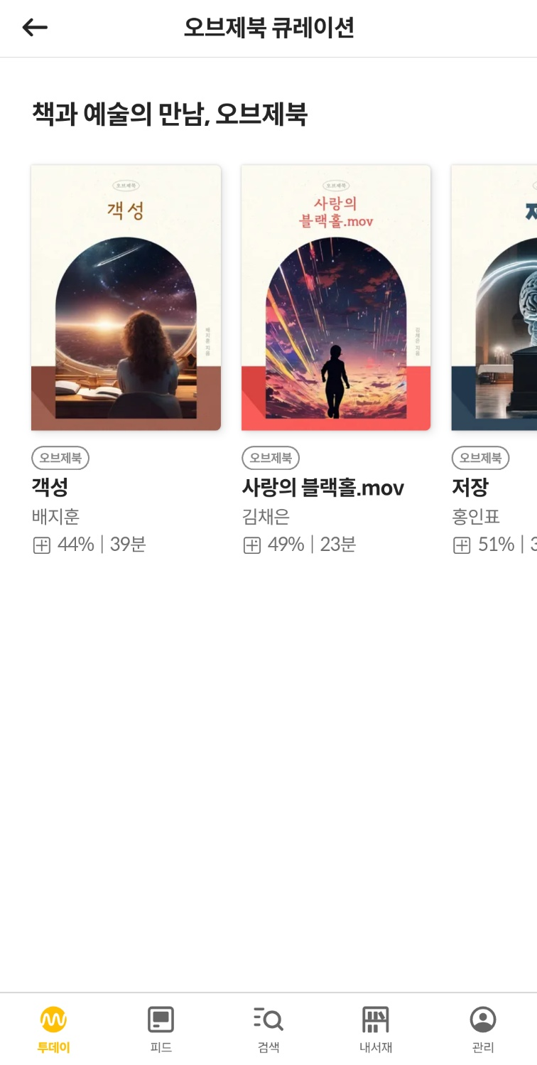 밀리의 서재는 전자책 외에도 오디오북이나 오브제북, 도슨트북등 다양한 특징과 장점을 가진 카테고리로 구성되어 있어 이용하기가 편리한데요, 출퇴근 길이나 자기 전 쉽고 편하게 이용 가능한 오디오북은 보는 즐거움과 듣는 즐거움을 동시에 느낄 수 있는 매력을 가지고 있기도 합니다.