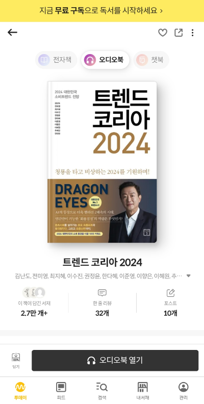 워낙 다양한 장르, 다양한 방식으로 즐기는 책들의 숫자가 많아 새로운 책을 선택할 때마다 상당한 고민을 하게 되는데요, 밀리의 서재는 최근 서점에 출시된 도서들도 빠르게 접할 수 있어 인기 높은 책들을 선택할 수 있어 만족스럽습니다.