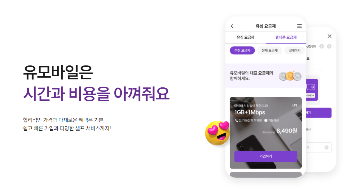 통신비는 전략하고 원하는 혜택은 자유롭게 선택할 수 있는 유모바일은 LG U+ 자회사로 믿을 수 있는 통신사입니다. 합리적인 요금제와 다양한 서비스도 압권인데요, 전담 고객센터를 운영하고 있어 이용이 편리하고, APP을 통해 요금제 변경이나 여러 설정을 간단히 선택할 수 있어 이용이 편리합니다. 뿐만 아니라 본인 라이프 스타일이 맞는 요금제와 다양하 ㄴ혜택까지 이보다 더 좋은 통신사가 있을까 싶을 정도입니다.
