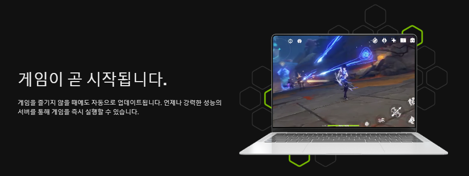 고사양 게임을 즐기기 위해 PC를 구매한다는 이야기는 지포스나우 하나로 더이상 정답이 아니게 되었는데요, 최소 요구사항만 갖춘 PC를 보유하고 있다면 문제 없으 플레이를 즐길 수 있습니다. 특히 고성능 서버에 모든 파일들이 준비되어 있기 때문에 대용량 게임을 다운 받는 시간도 없고, SSD저장공간을 차지하는 일도 없어 유용합니다.