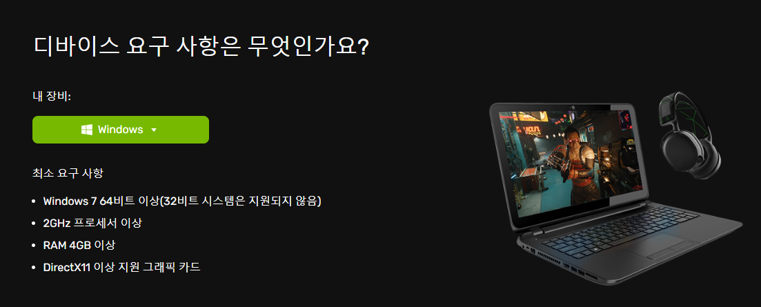 리그오브레전드 처럼 PC 그래픽 사양으로 인해 플레이가 어려웠던 부분들을 엔비디아의 그래픽 카드가 장착된 고사양 서버에서 게임을 실행시키면서 사용하는 PC로 스트리밍을 받아 조작하는 방식으로 진행되는 만큼 인터넷 연결만 문제 없다면 언제 어디서든 노트북 하나로 원하는 게임을 즐길 수 있습니다.