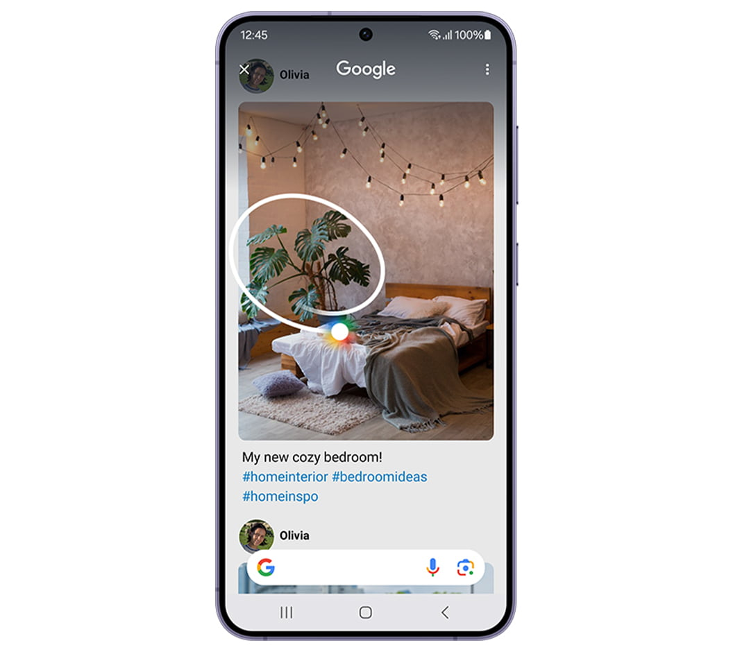갤럭시S24 디바이스의 가장 핵심 포인트인 AI 기능은 서클 투 서치입니다. 화면을 보다 검색하고 싶은 것이 생겼을 때, 동그라미만 치면 즉시 구글 검색결과를 확인할 수 있습니다. 뿐만 아니라 실시간 통역도 가능해 다른 언어를 사용하는 이들과 음성통화부터 문자 메시지까지 편하게 대화할 수 있게 되었습니다.