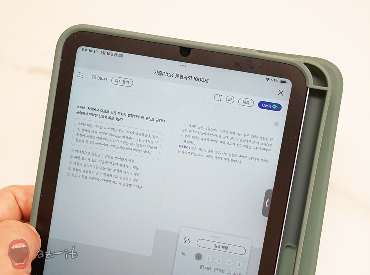 특히 기출탭탭 ebook의 경우 단순히 눈으로 보고 공부하는 학습 스타일이 아니라 OMR카드를 이용해 학습이 가능하기 때문에 실전에 가까운 학습을 할 수 있다는 점이 특징입니다. 수능과 내신 준비시 시간 배분까지 준비할 수 있어 유용합니다.