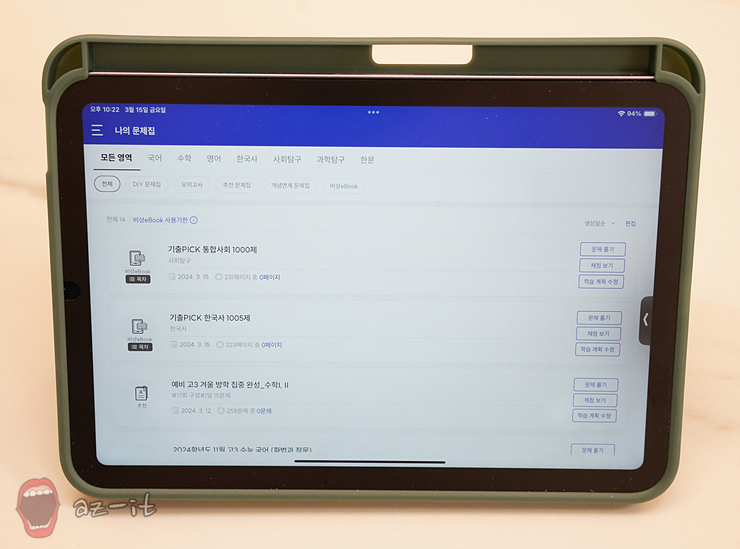 과목별 문제집을 무겁게 들고 다니는게 아니라 내신 기출 학습과 완자 기출 PICK eBOOK으로 전 교재 학습이 가능해 아이들의 어깨 짐을 덜어주고, 원하는 과목을 언제 어디서든 공부할 수 있는 편리함까지 더해졌습니다. 태블릿 PC 또는 스마트폰만 있다면 두 손은 가볍게 원하는 곳 어디든 공부할 수 있는 조건이 갖춰지는 셈입니다.