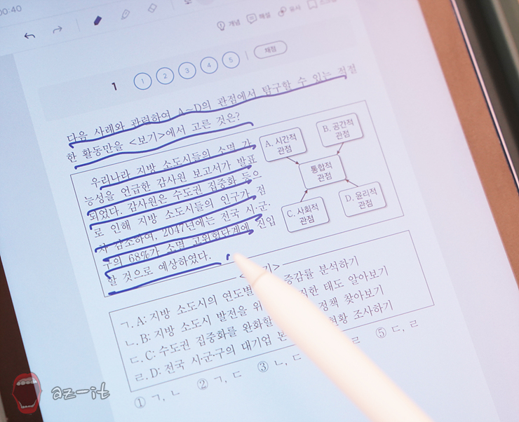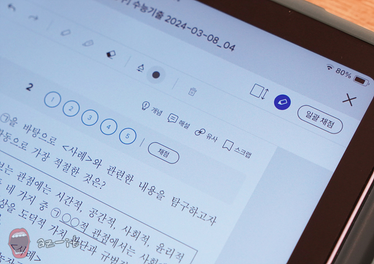 특히 스마트 학습 기능은 공부의 집중도를 더욱 높여주는 부분입니다. 완자 기출 PICK eBook 학습 시 자동으로 채점해 주고, 취약 유형을 분석해 주는 동시에 스크랩과 오답노트 기능을 제공하고 있어 취약한 부분을 복습하고 이해하는 방식의 시스템이 제공됩니다. 아무래도 책으로만 공부하는 것과 달리 현재 학습 상황에 대한 분석적인 부분에 있어서도 월등하고 말이죠.