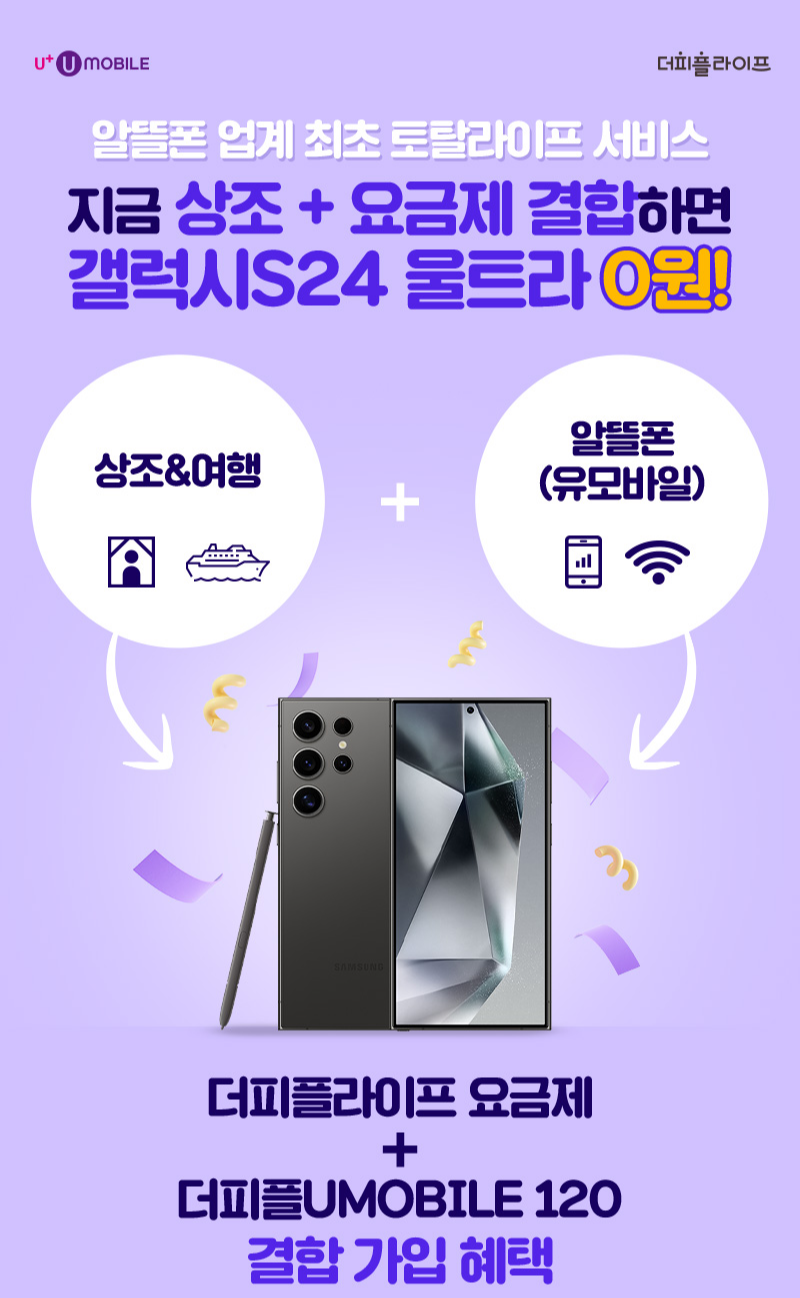 더피플라이프 결합상품의 경우에도 알뜰폰 요금제와 상 더피플UMOBILE 120 상조 혜택을 더할 경우 통신비 외에는 만기 시 100% 환급도 가능해 유용한데요, 무엇보다 갤럭시 S24 디바이스를 0원으로 구매 가능한 만큼 통신비 절약과 함께 여행이나 장례등 큰 비용이 필요한 상황을 대비할 수 있는 라이프케어 서비스까지 미리 준비하기에 안성맞춤입니다.